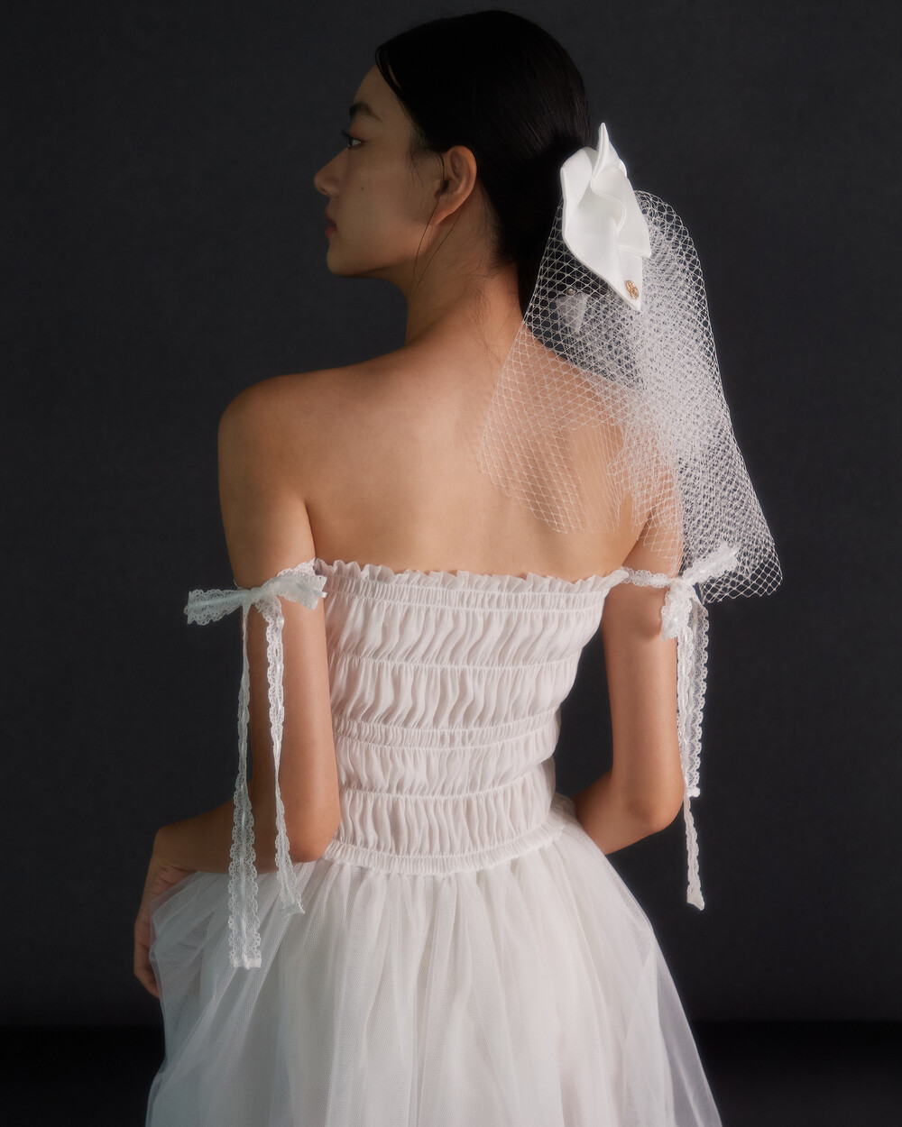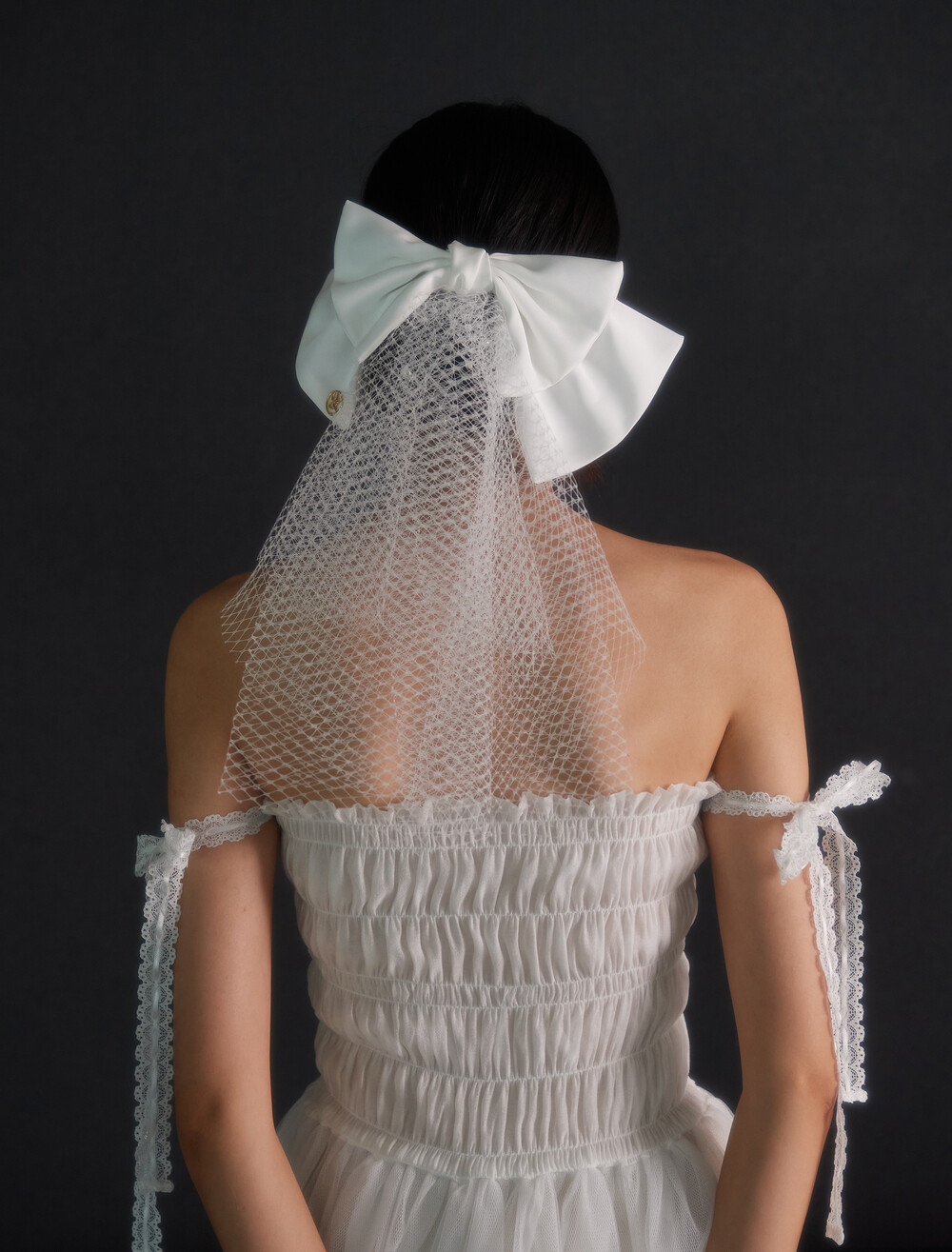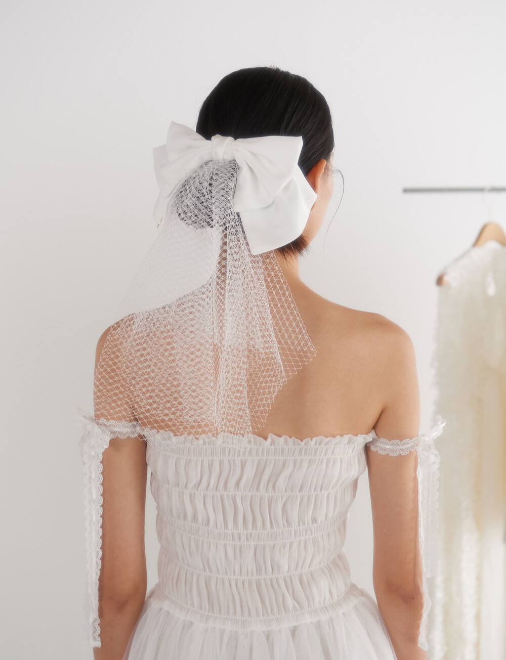 [주문제작] 브라이덜 메쉬 리본 베일_화이트