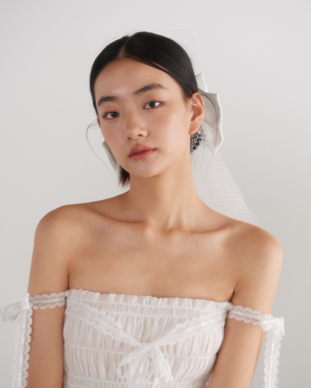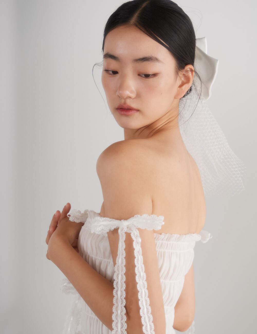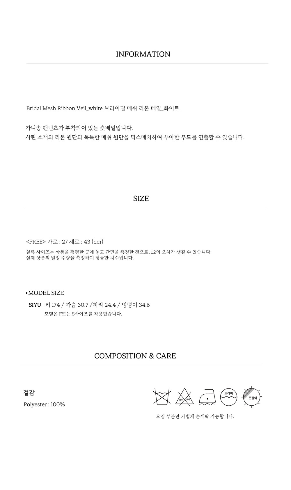 [주문제작] 브라이덜 메쉬 리본 베일_화이트