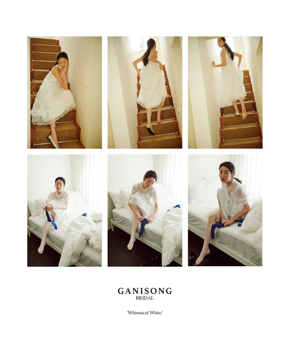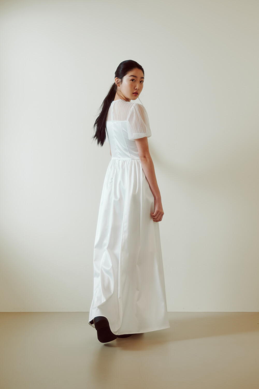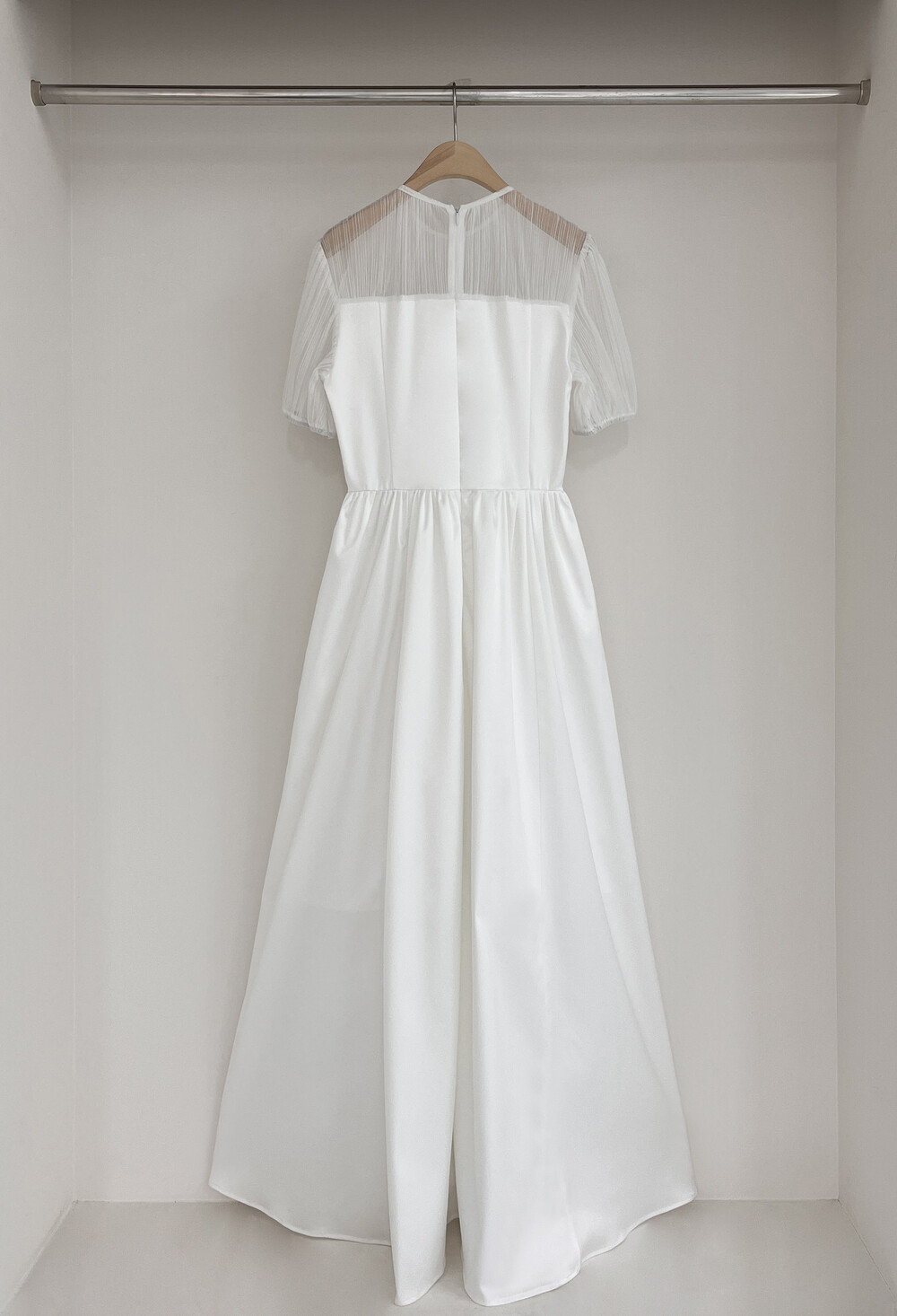 하의 부분은 풍성한 분량의 셔링을 잡아 넓게 퍼지는 실루엣입니다.