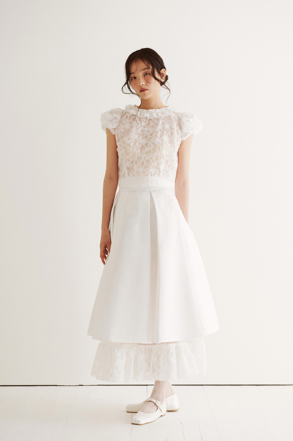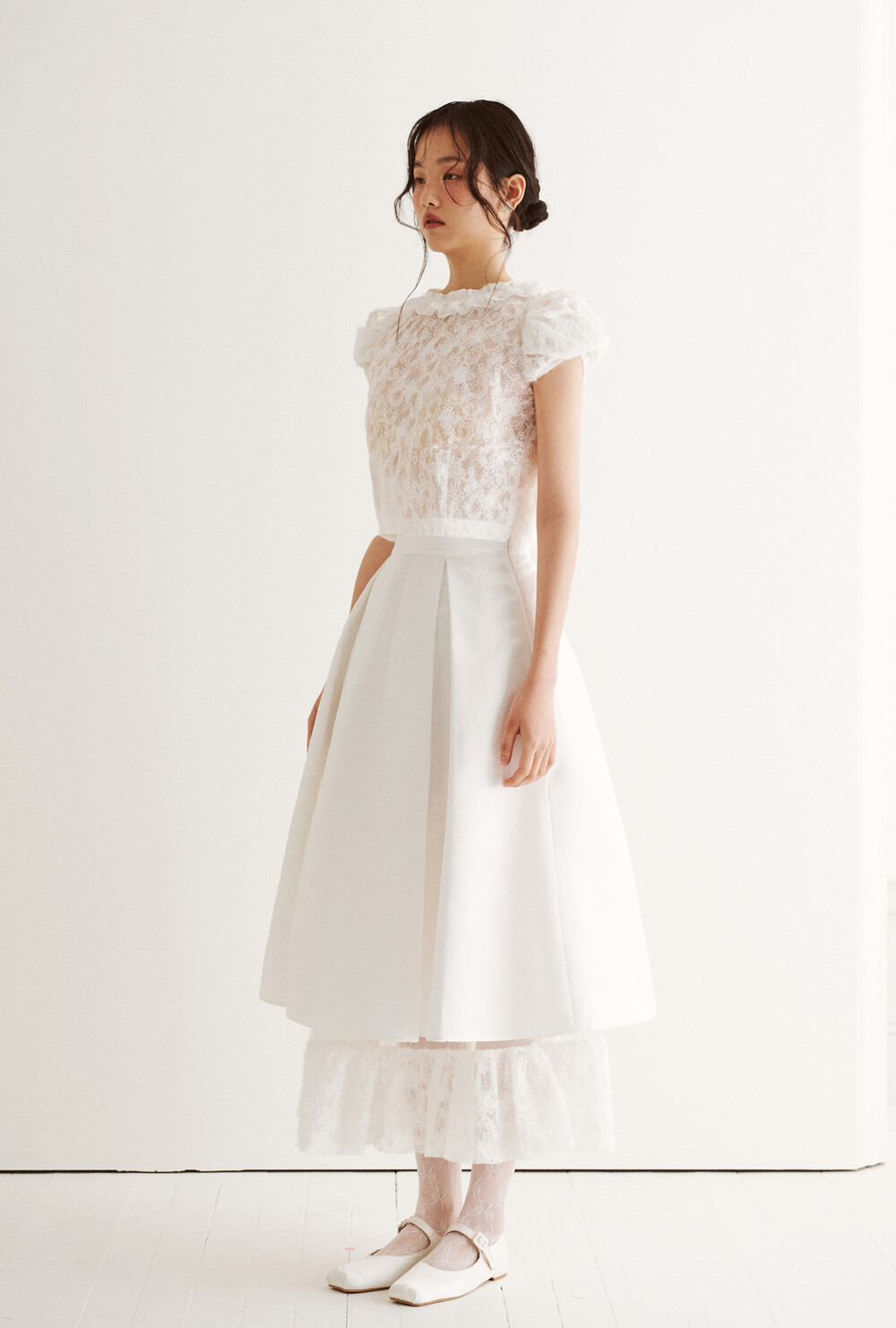 브라이덜 트위스트 퍼프 투 피스 드레스_화이트