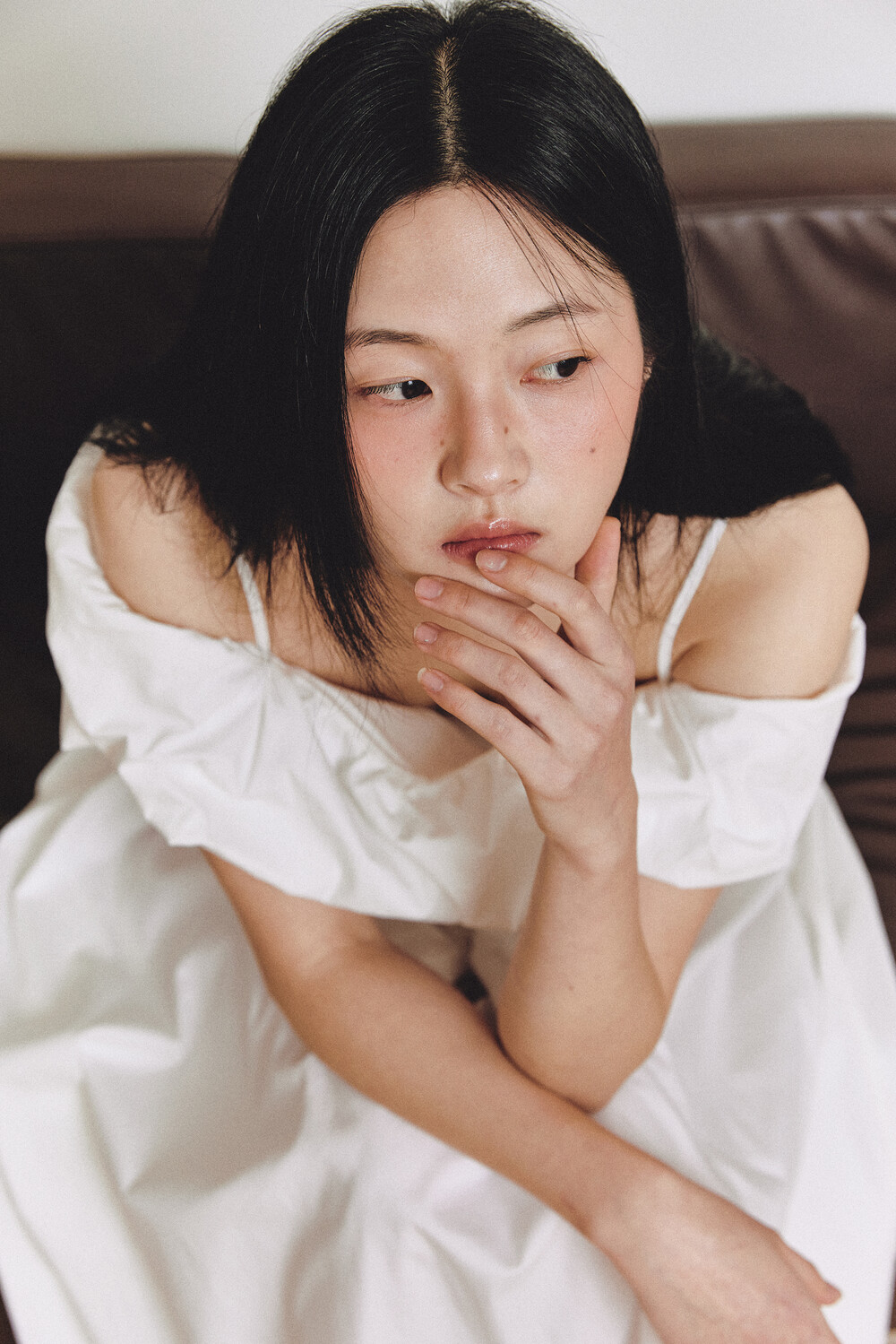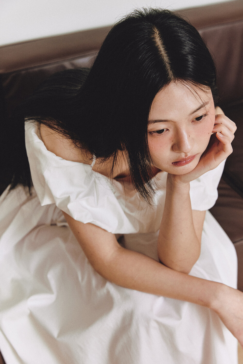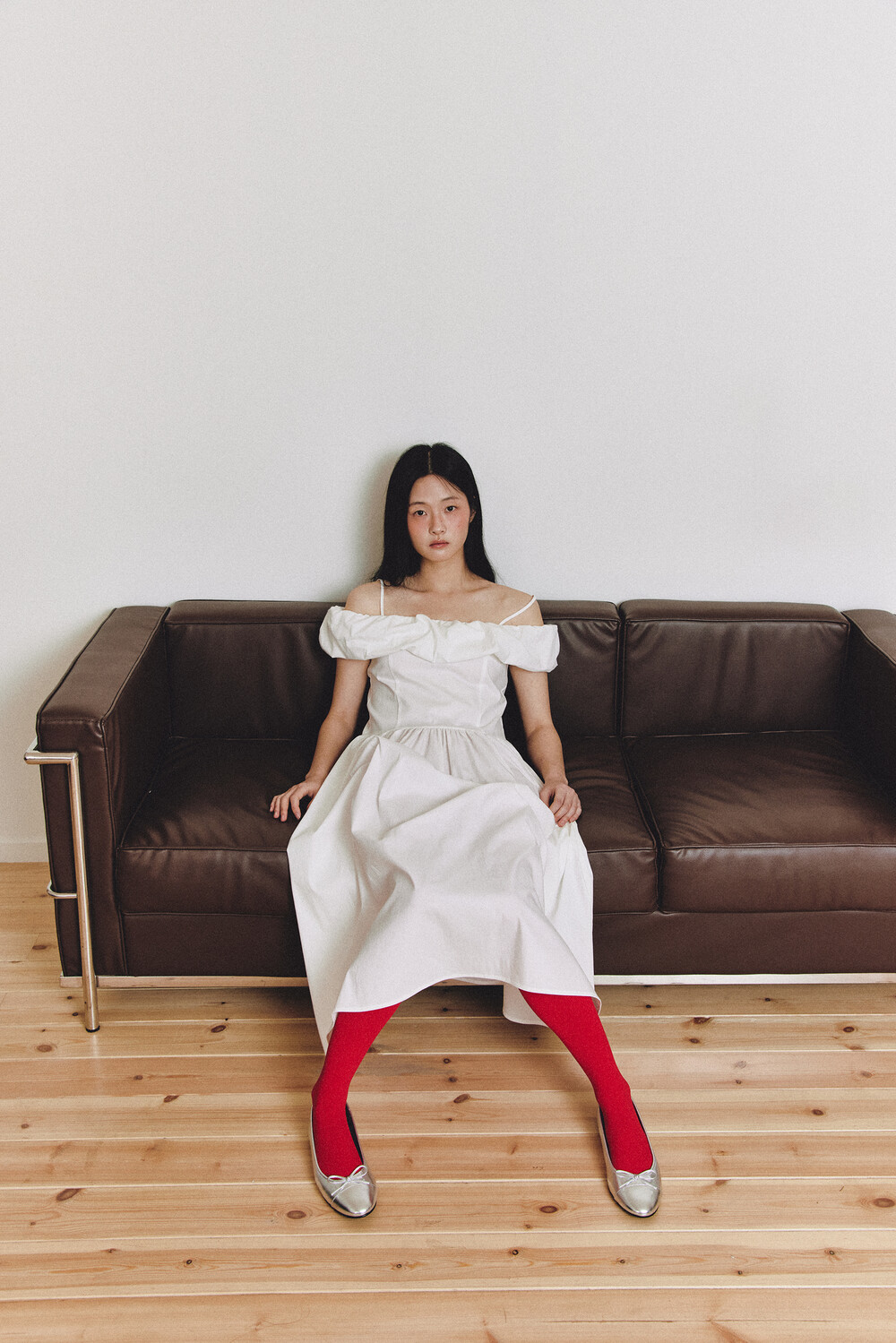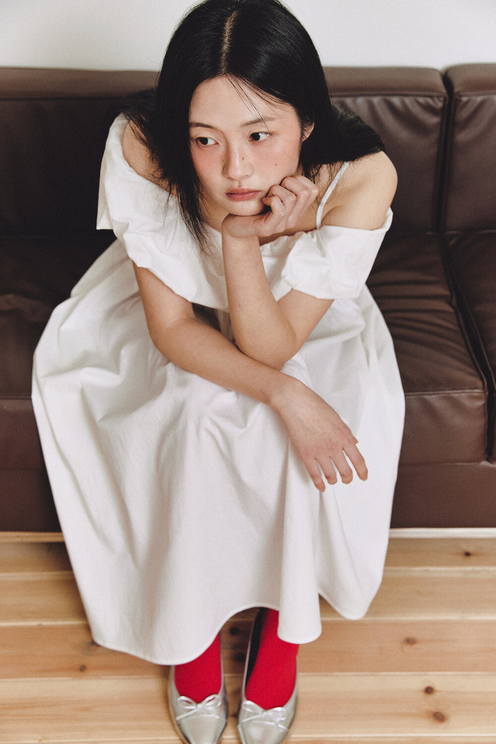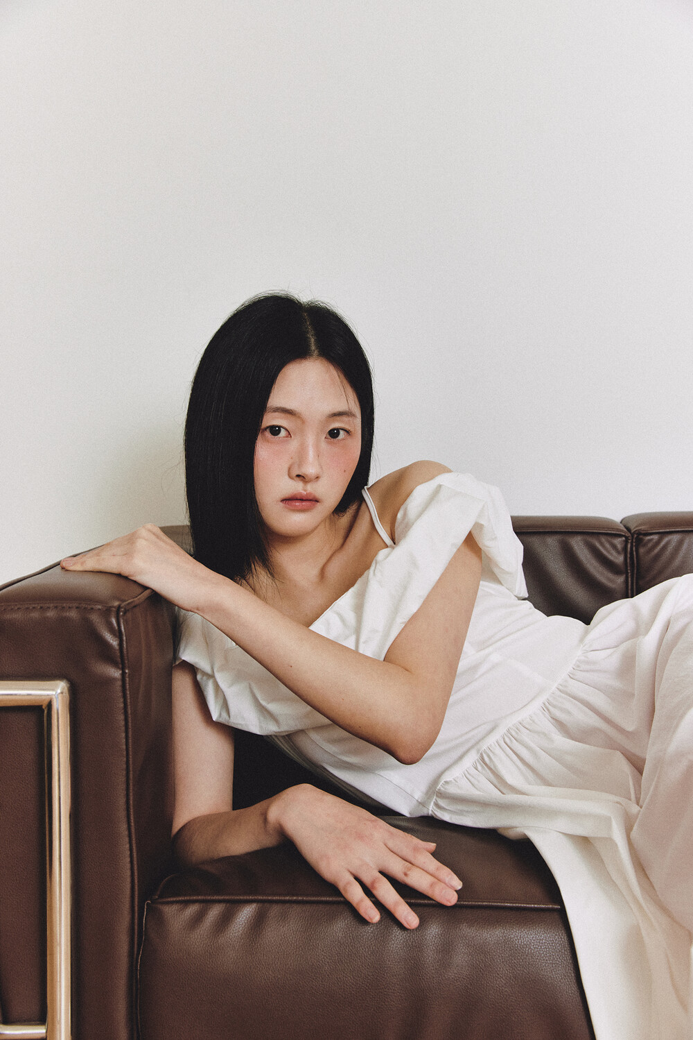 네크라인을 따라 풍성하게 달린 퍼프가 어깨를 감싸는 디테일이 매력적인 아이템입니다.