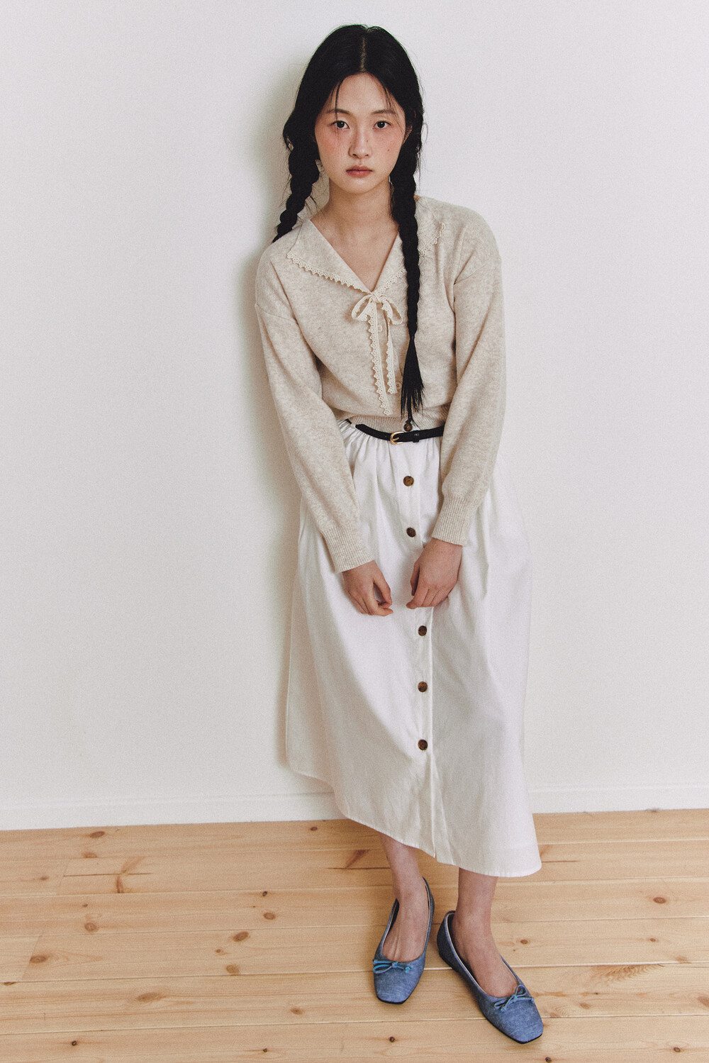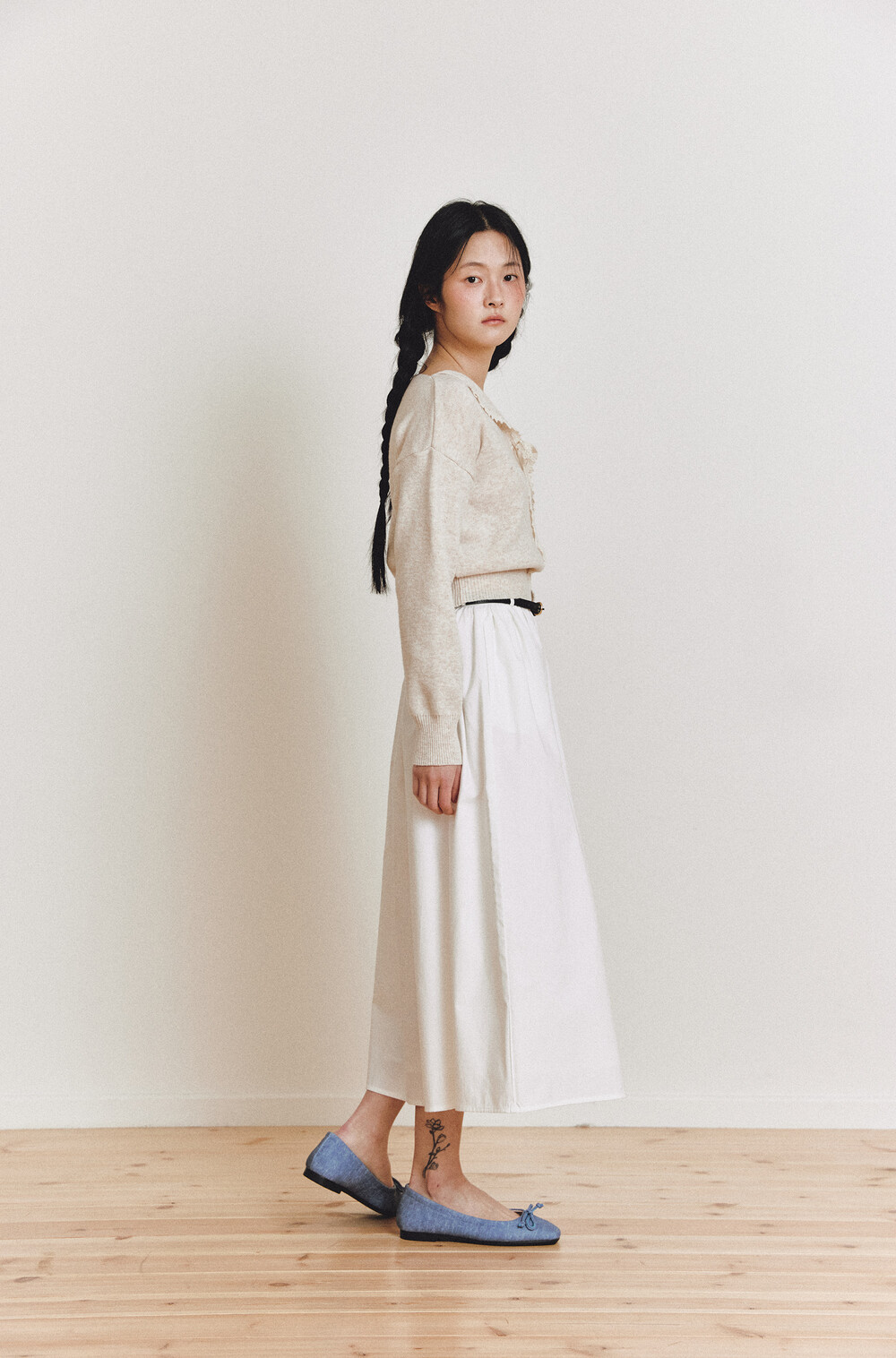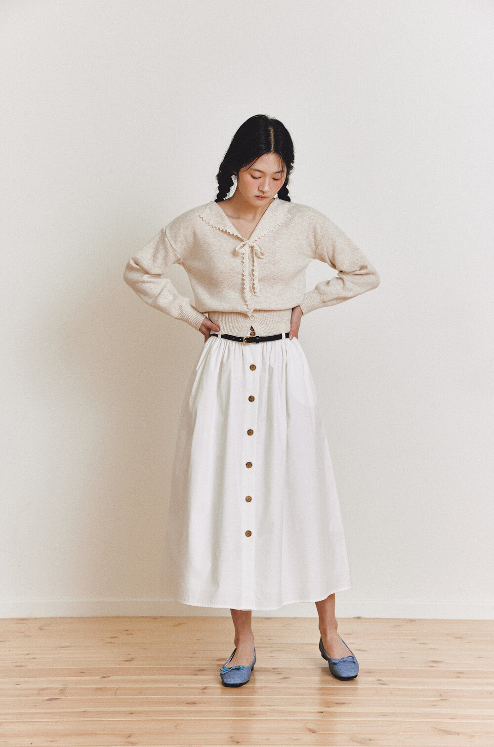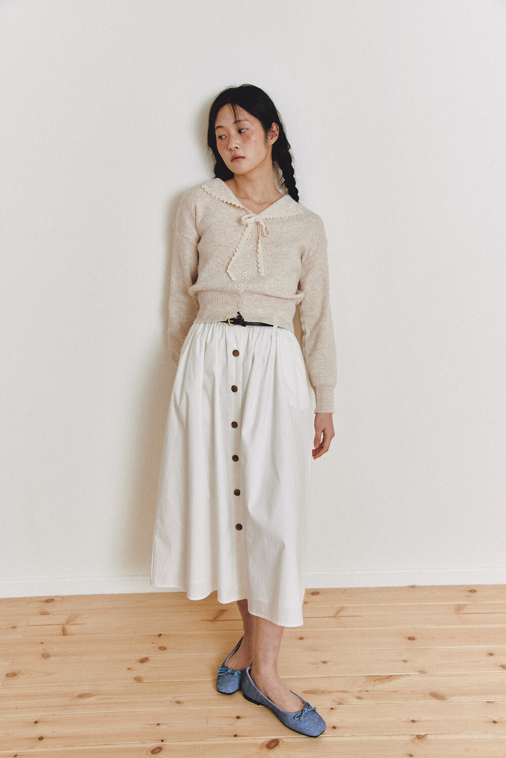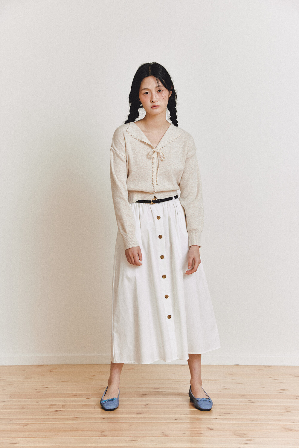 탄탄한 40수 옥스퍼드 원단으로 제작된 롱 스커트입니다.