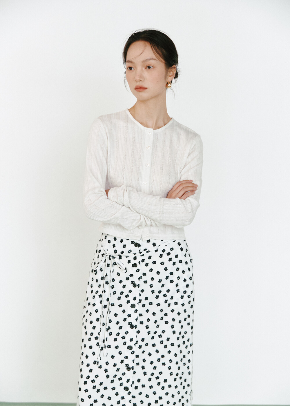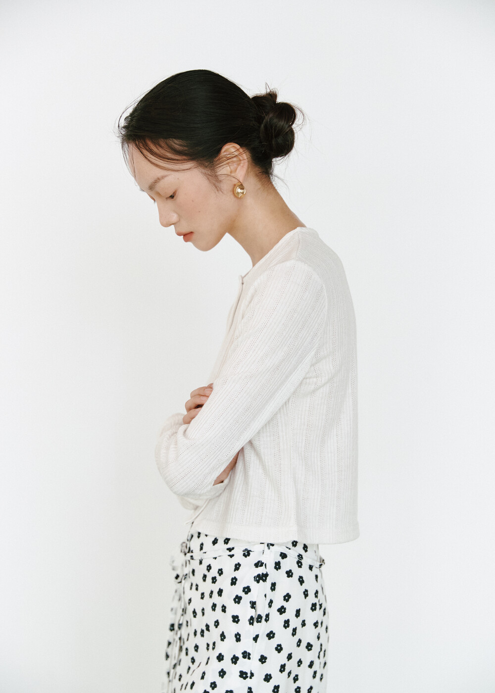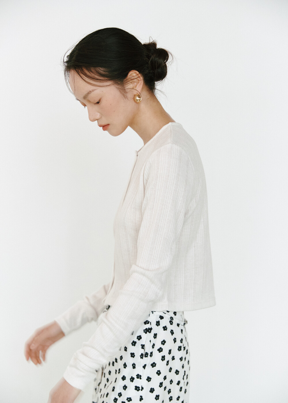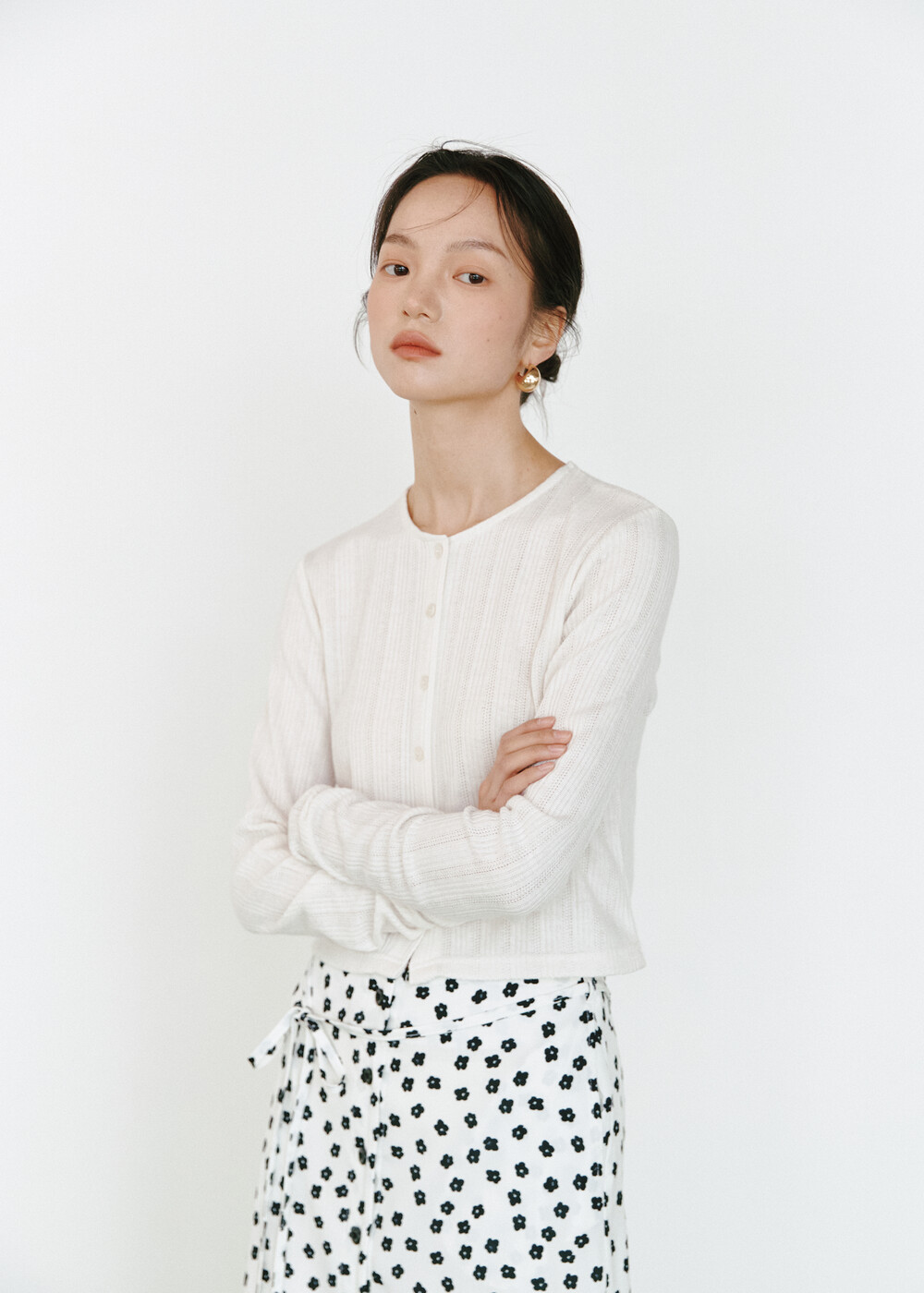 ㆍ아일렛이 있는 골지 원단의 부드러운 니트 소재로 여리여리한 무드를 연출