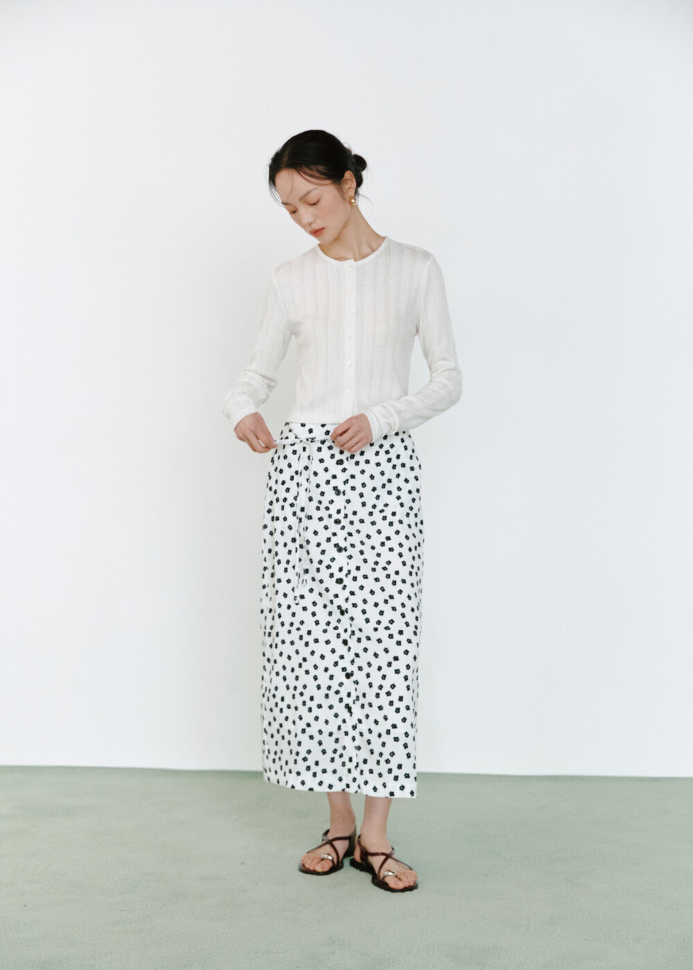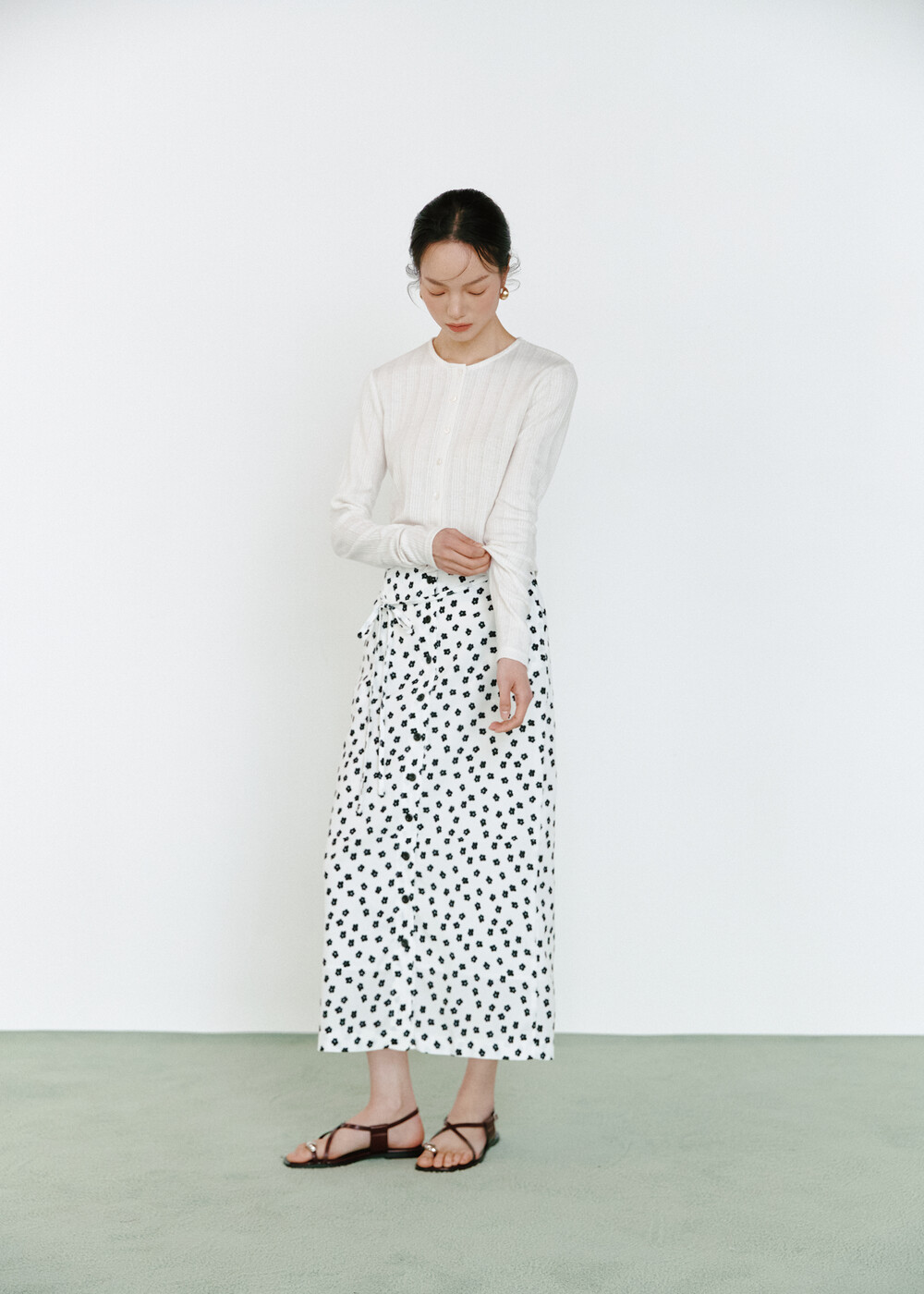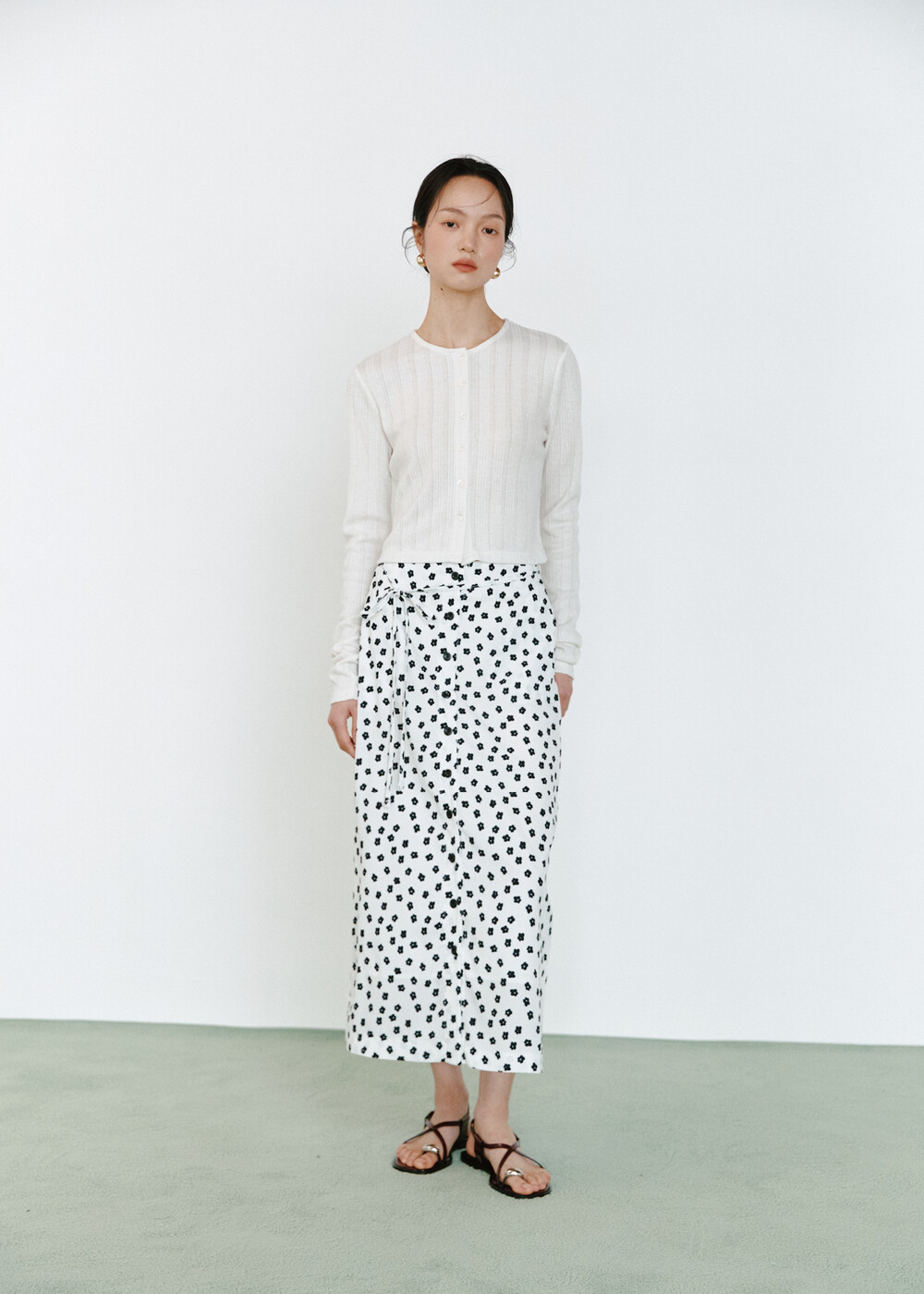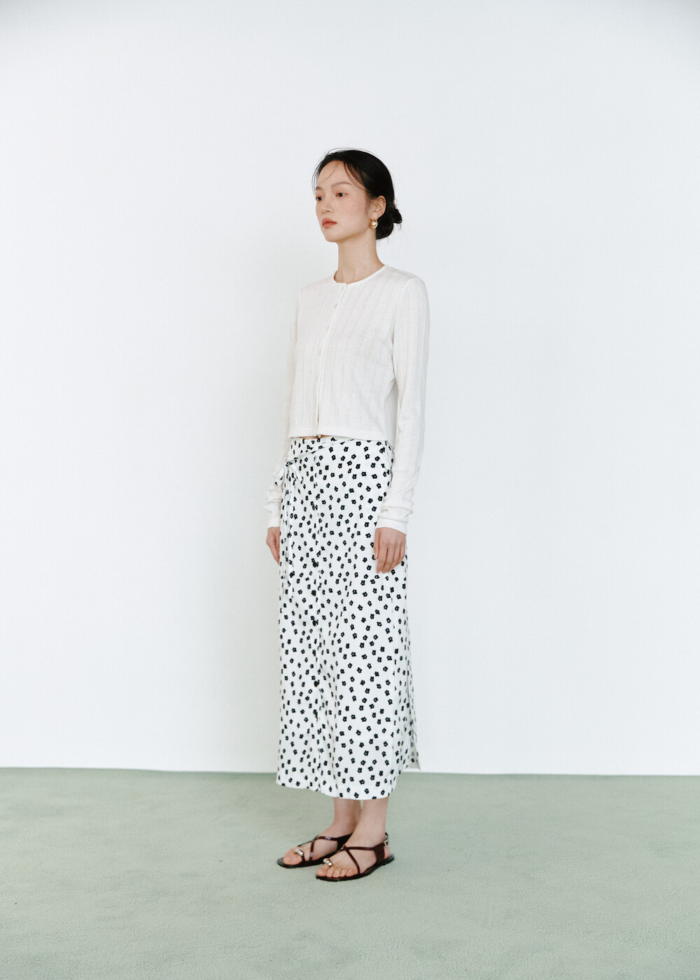 ㆍ아일렛이 있는 골지 원단의 부드러운 니트 소재로 여리여리한 무드를 연출
