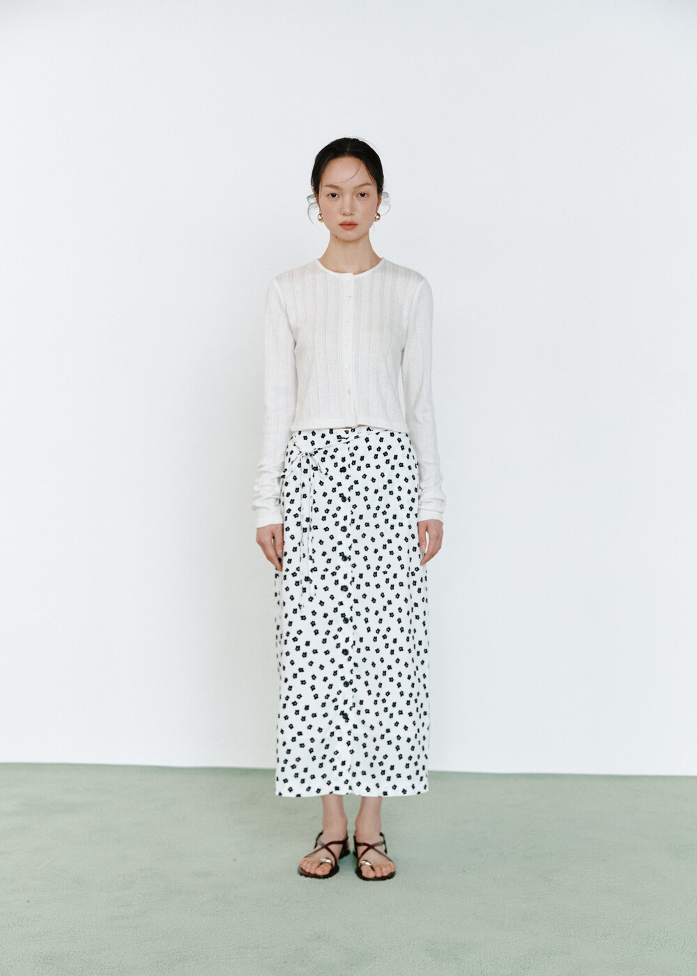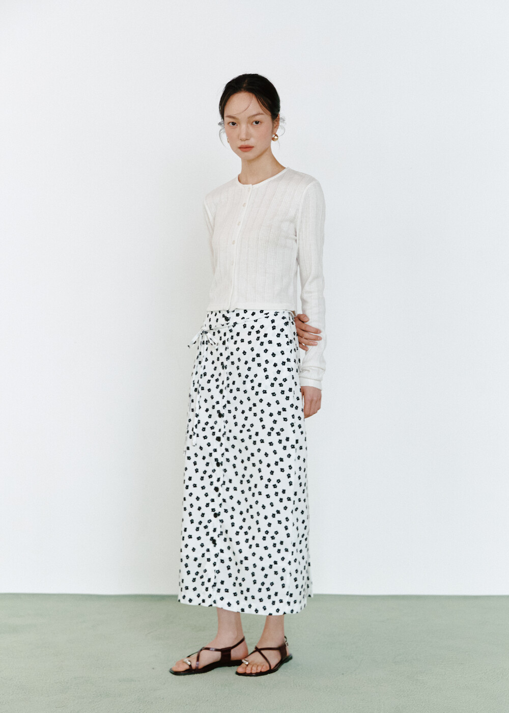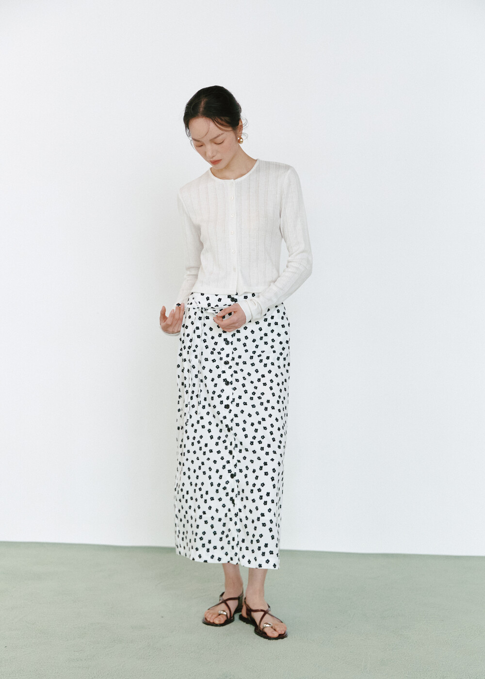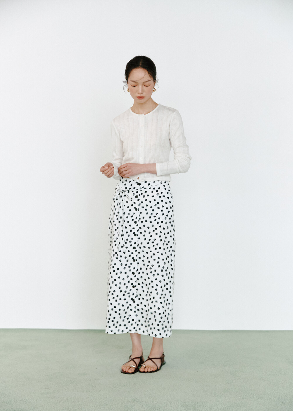 ㆍ아일렛이 있는 골지 원단의 부드러운 니트 소재로 여리여리한 무드를 연출