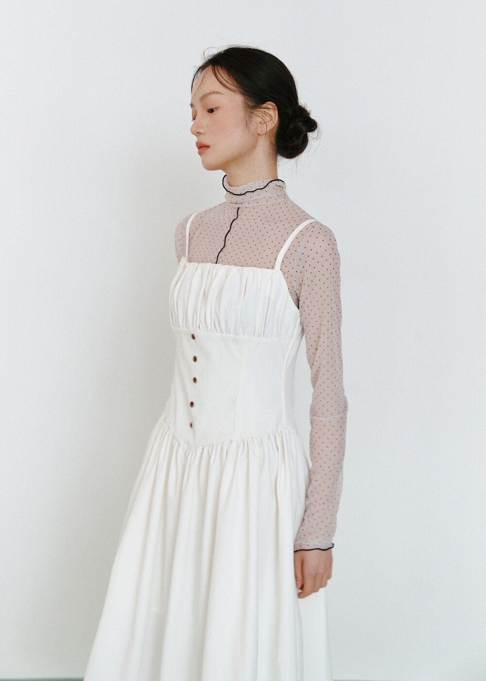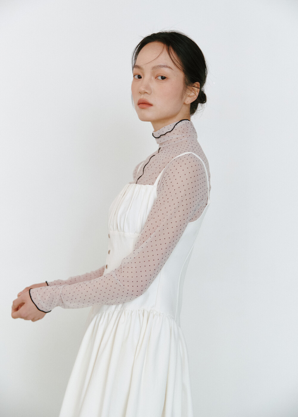ㆍ앞판 중심 절개선과 목, 소매단 인터로크 배색 포인트