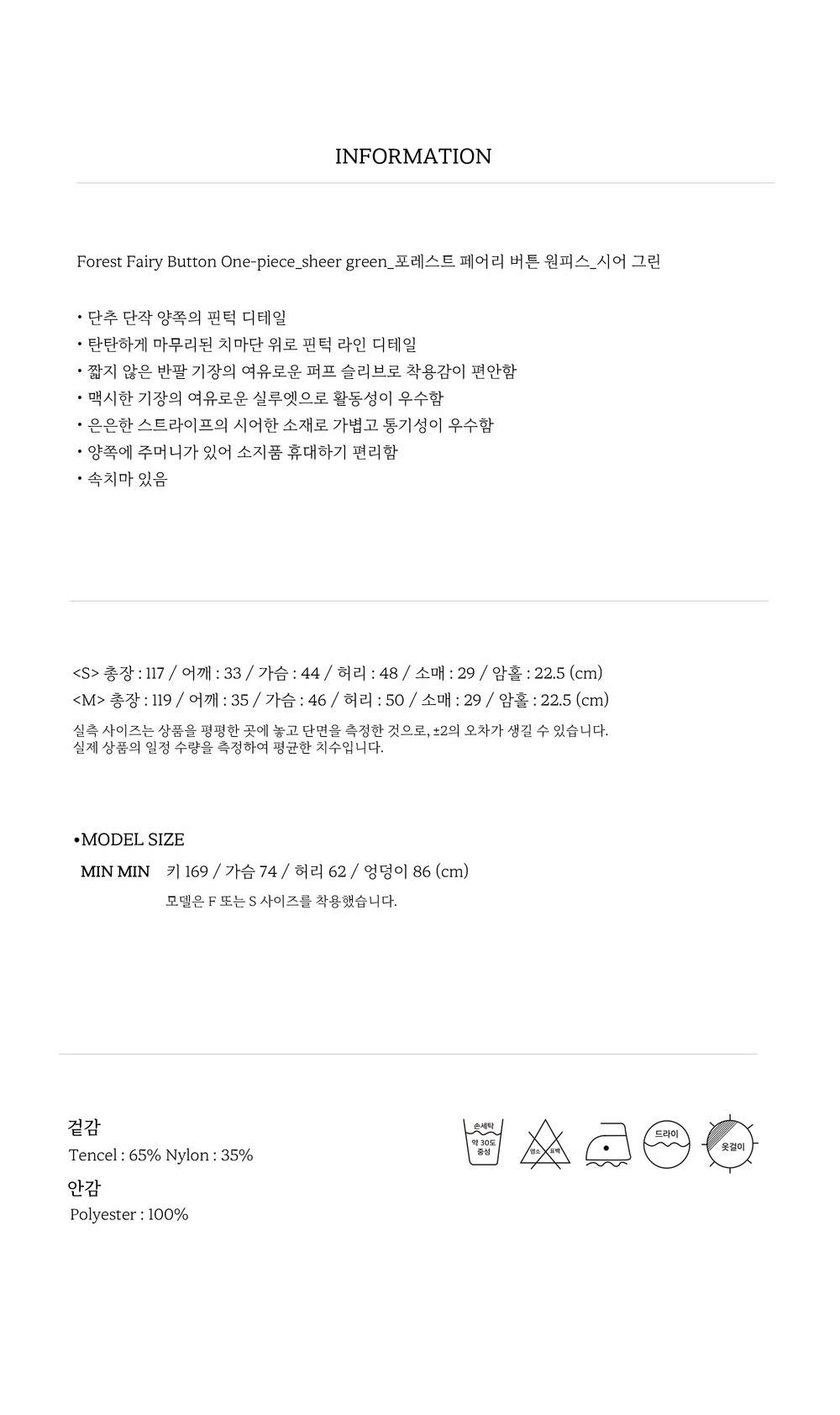 ㆍM 총장 : 119 / 어깨 : 35 / 가슴 : 46 / 허리 : 50 / 소매 : 29 / 암홀 : 22.5 (cm)