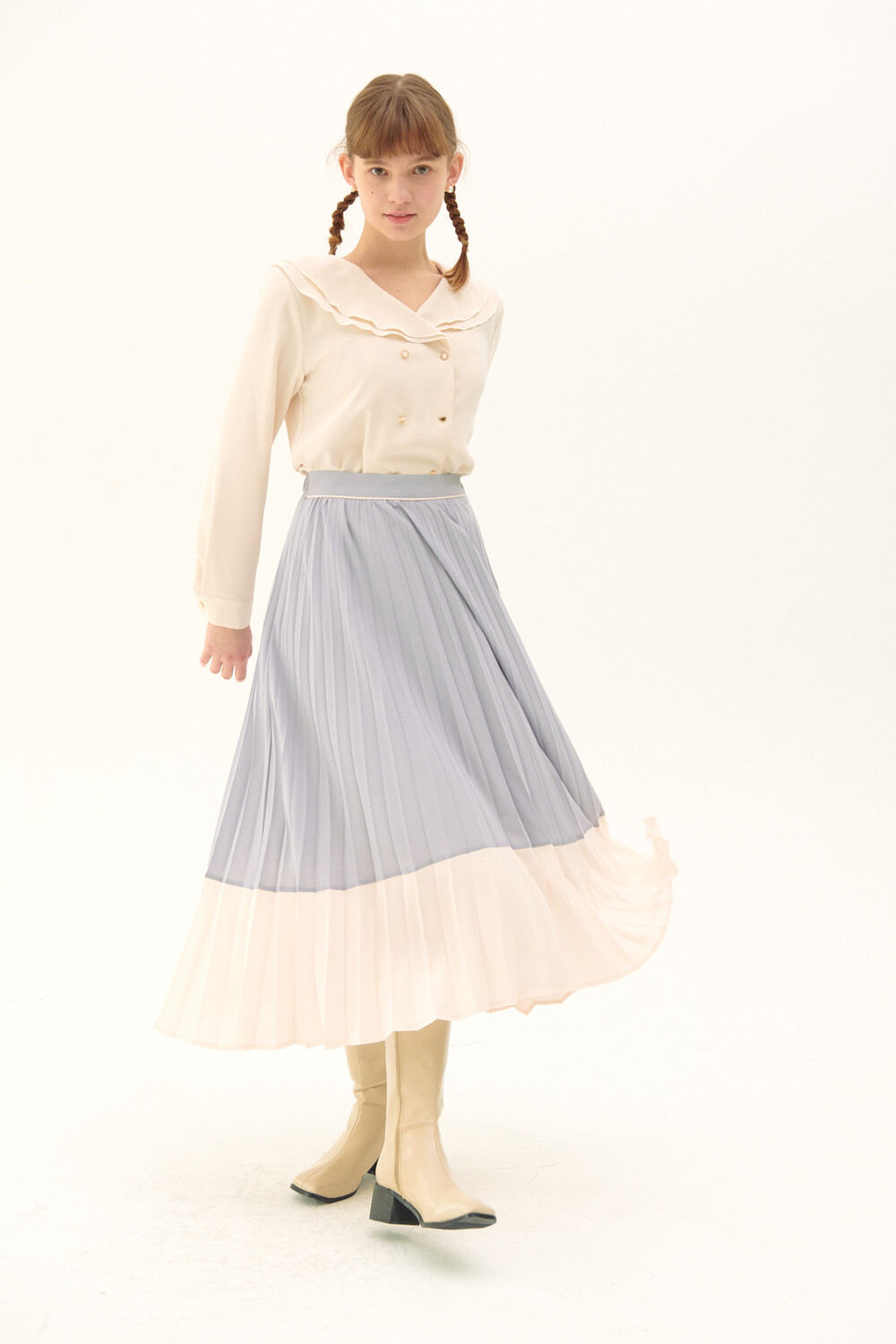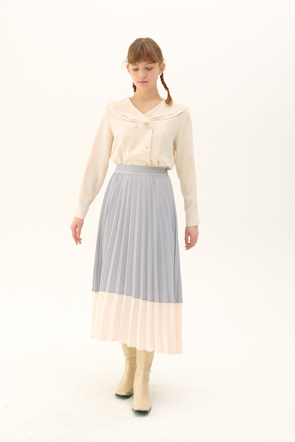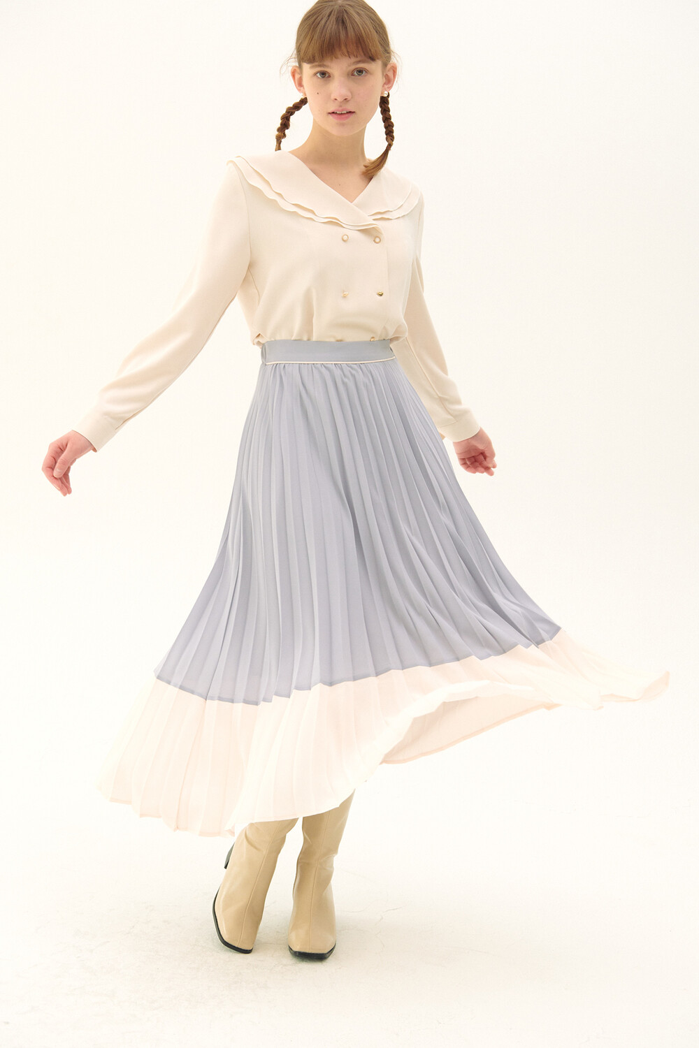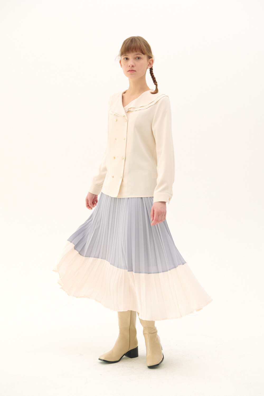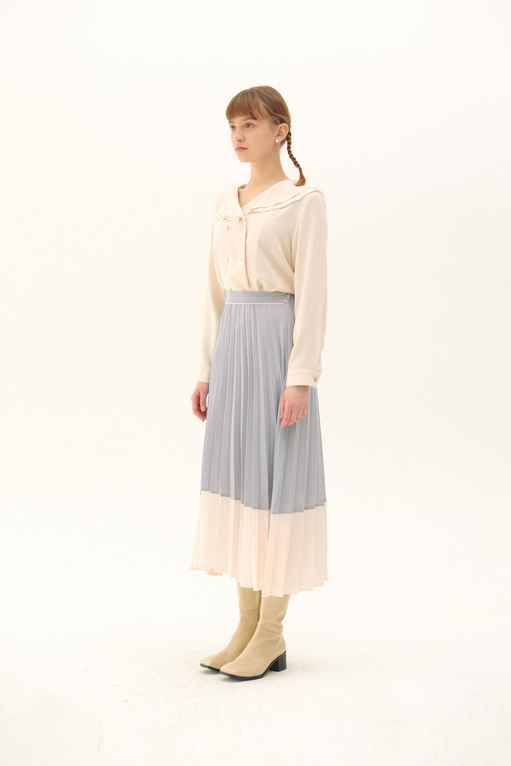Pleats Layered Long Skirt_light purple