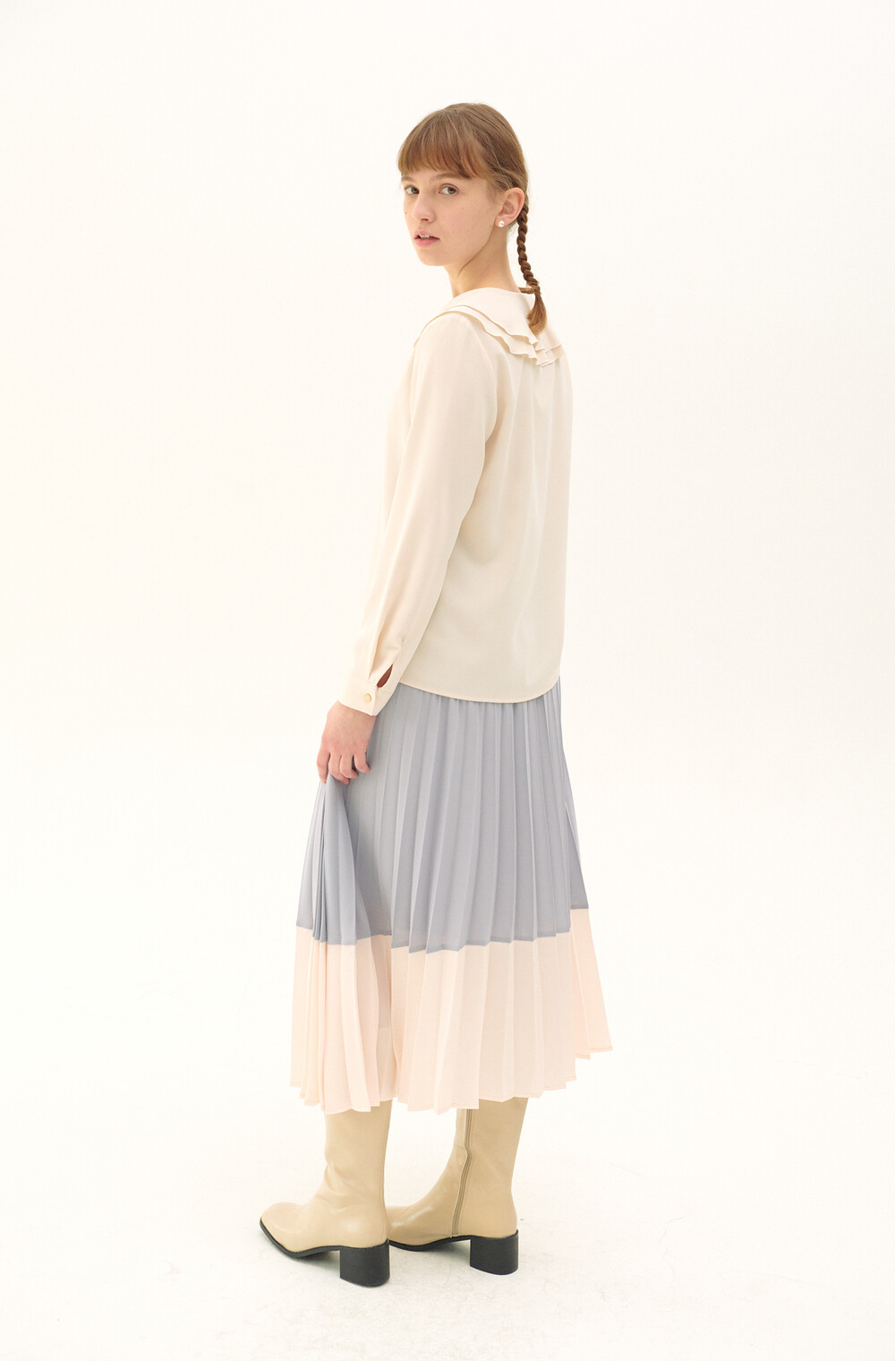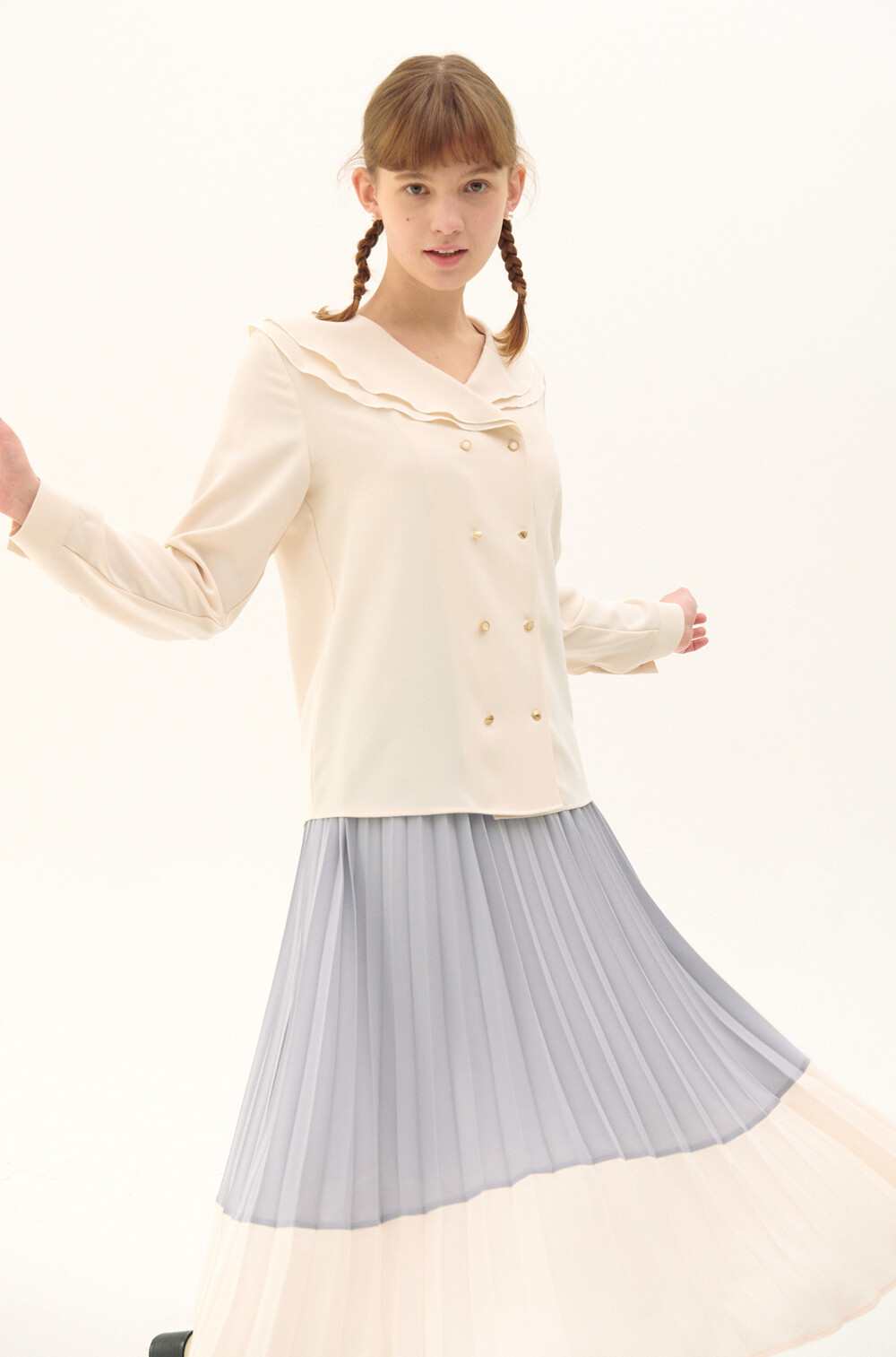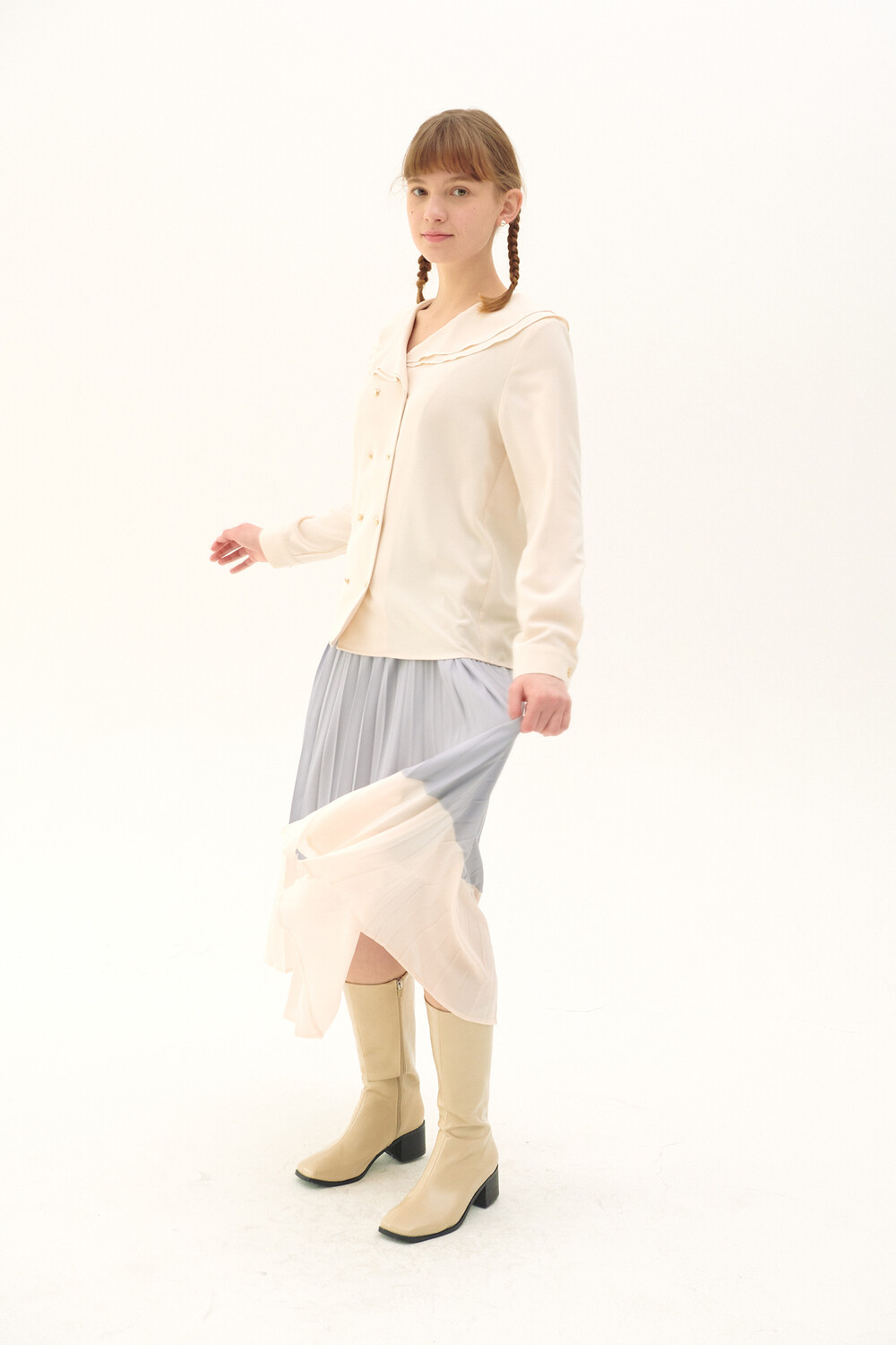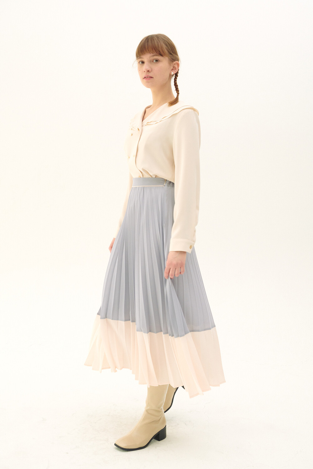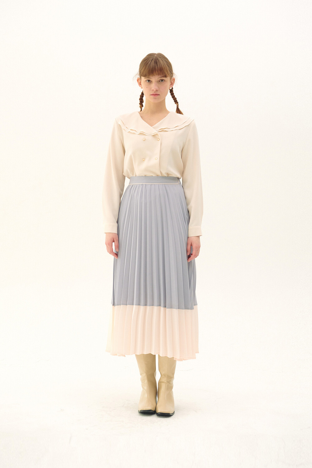 Pleats Layered Long Skirt_light purple