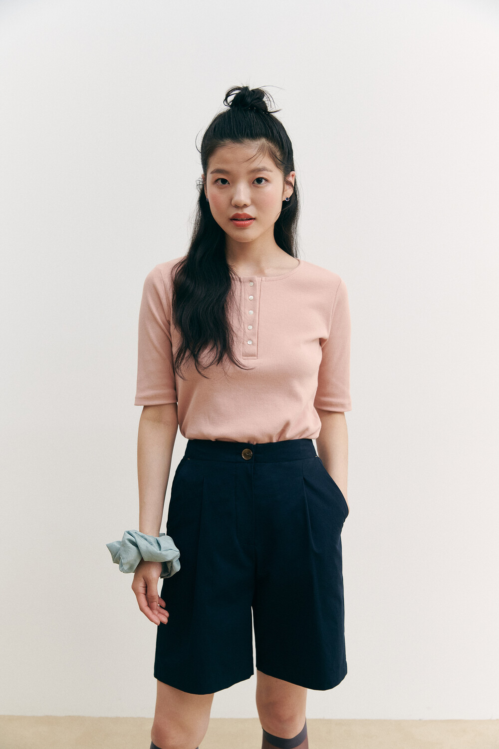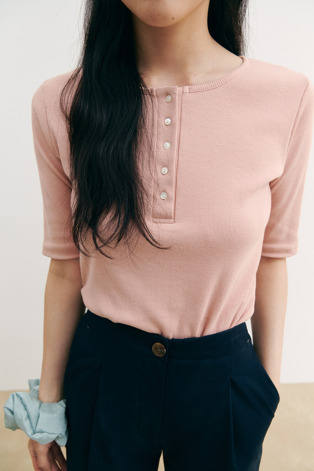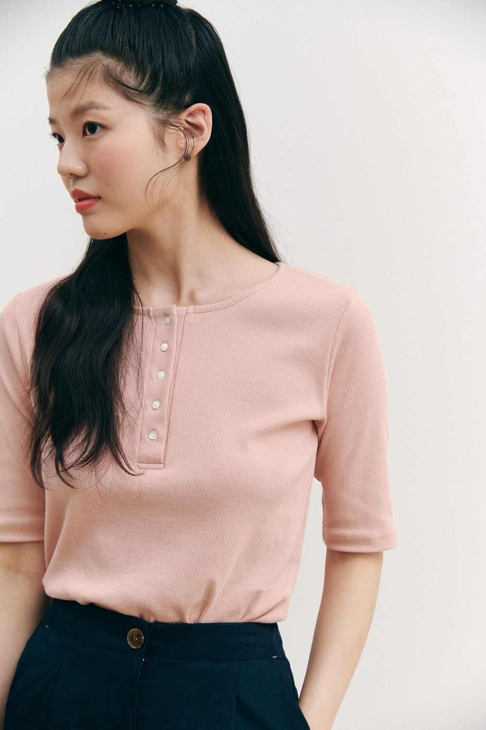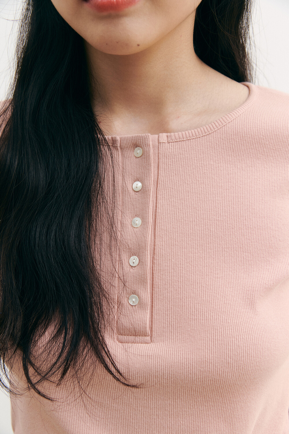 Henry Neck Ribbed Knit Top_pink