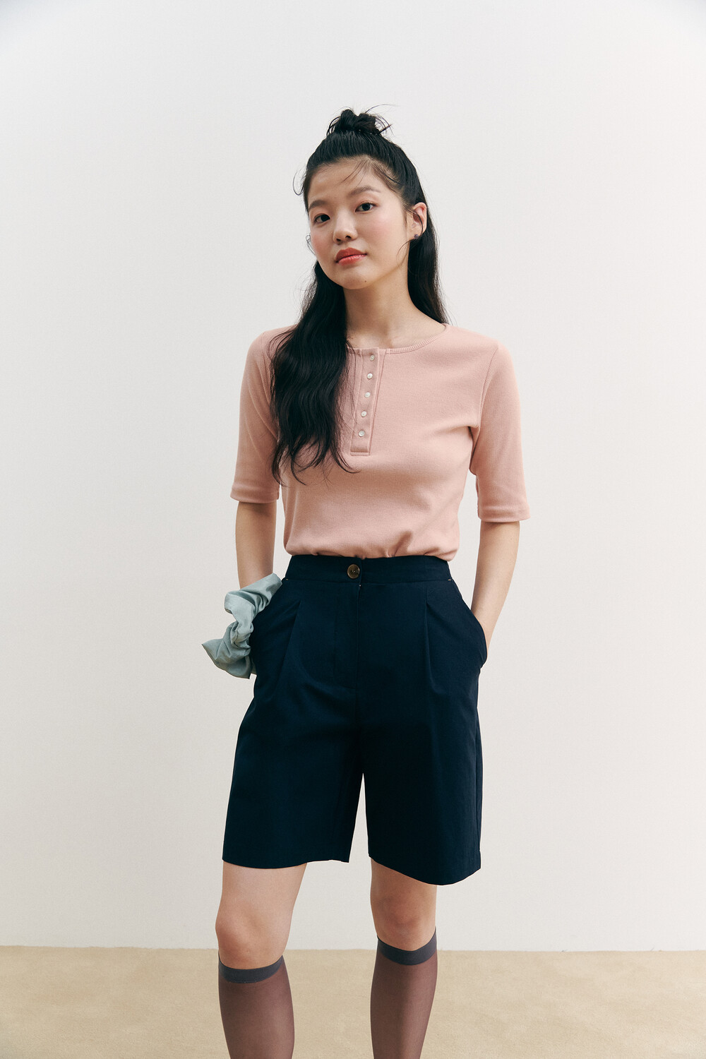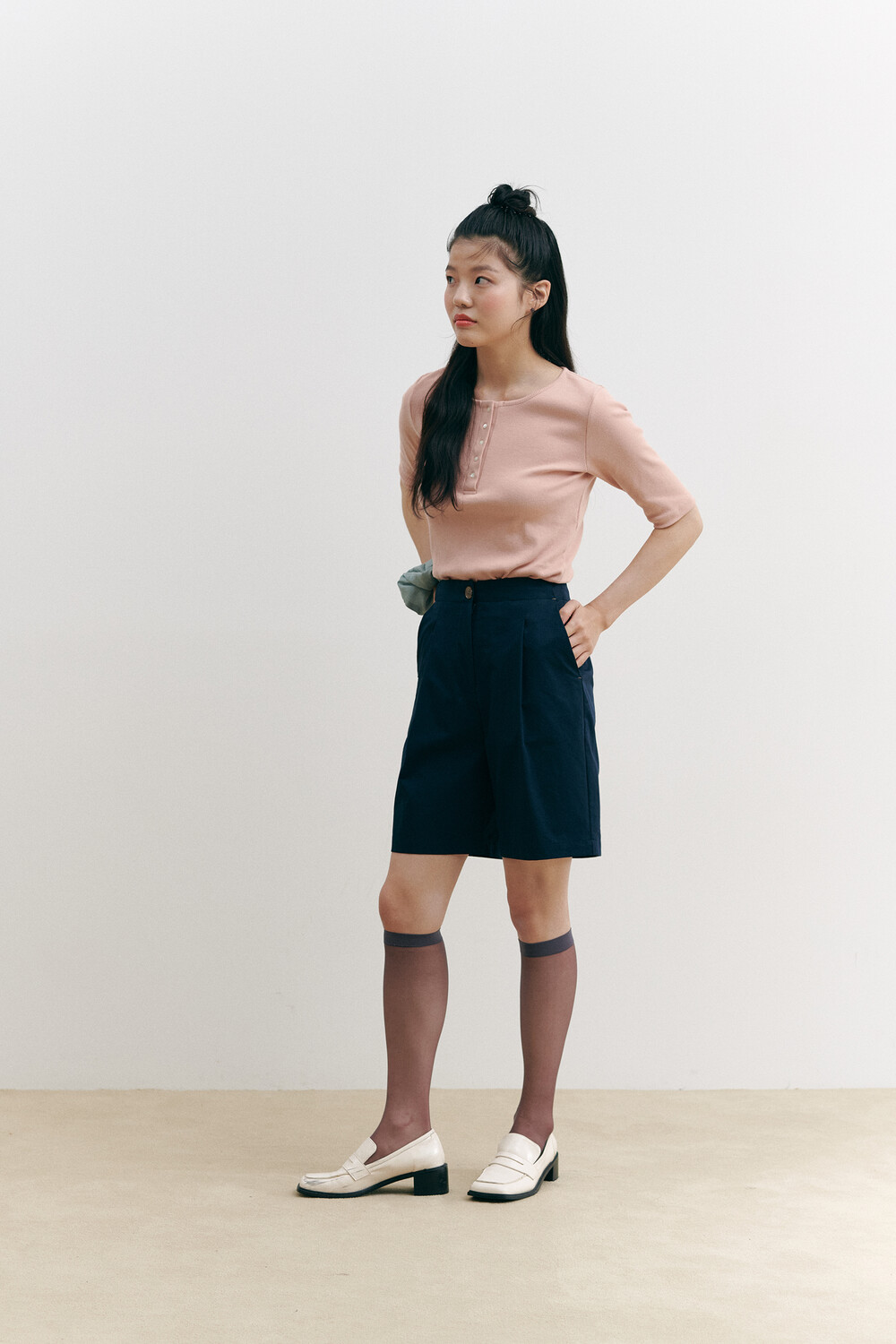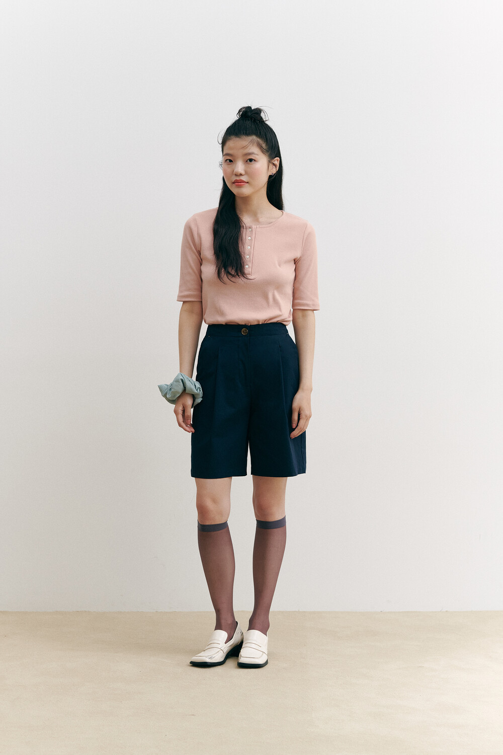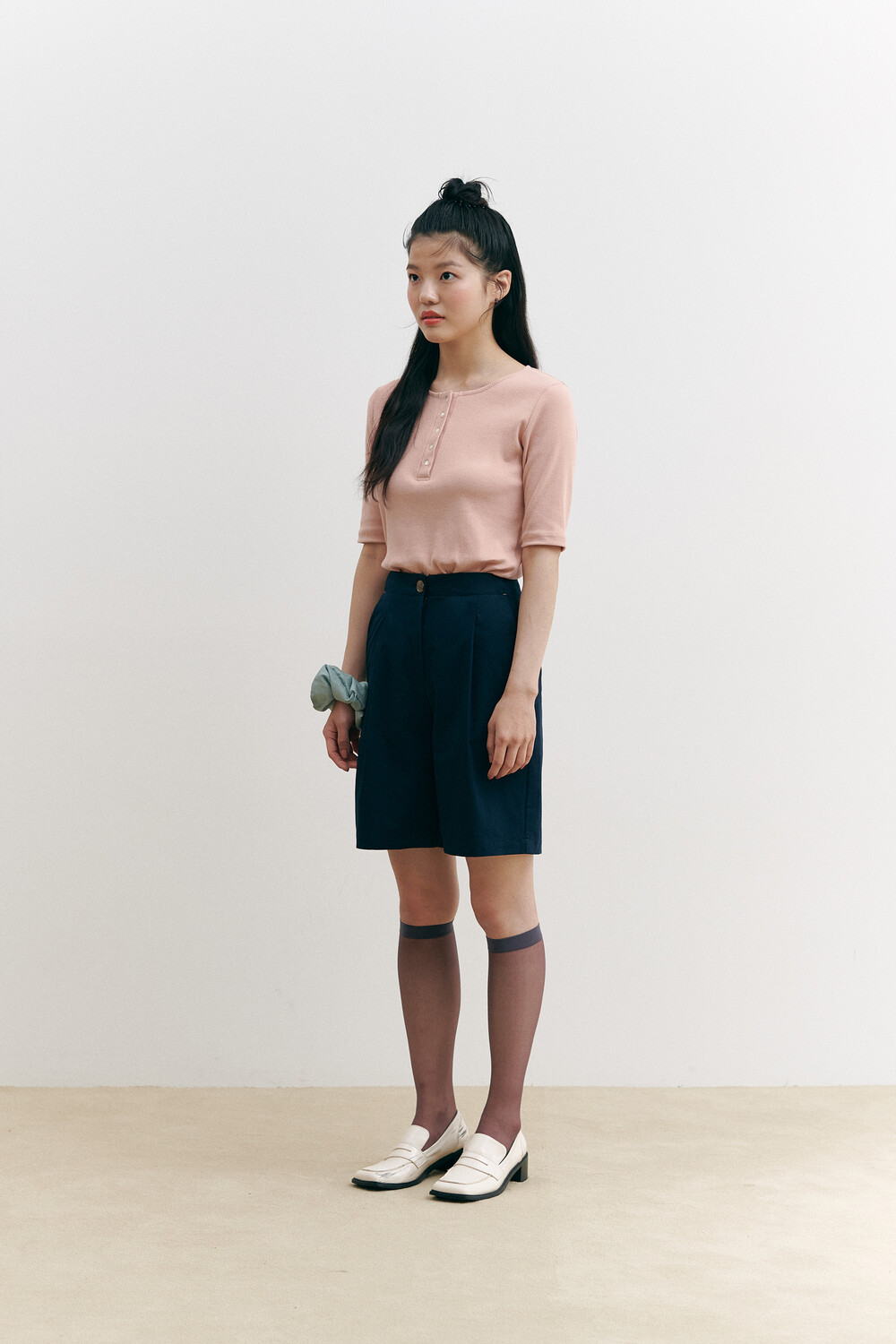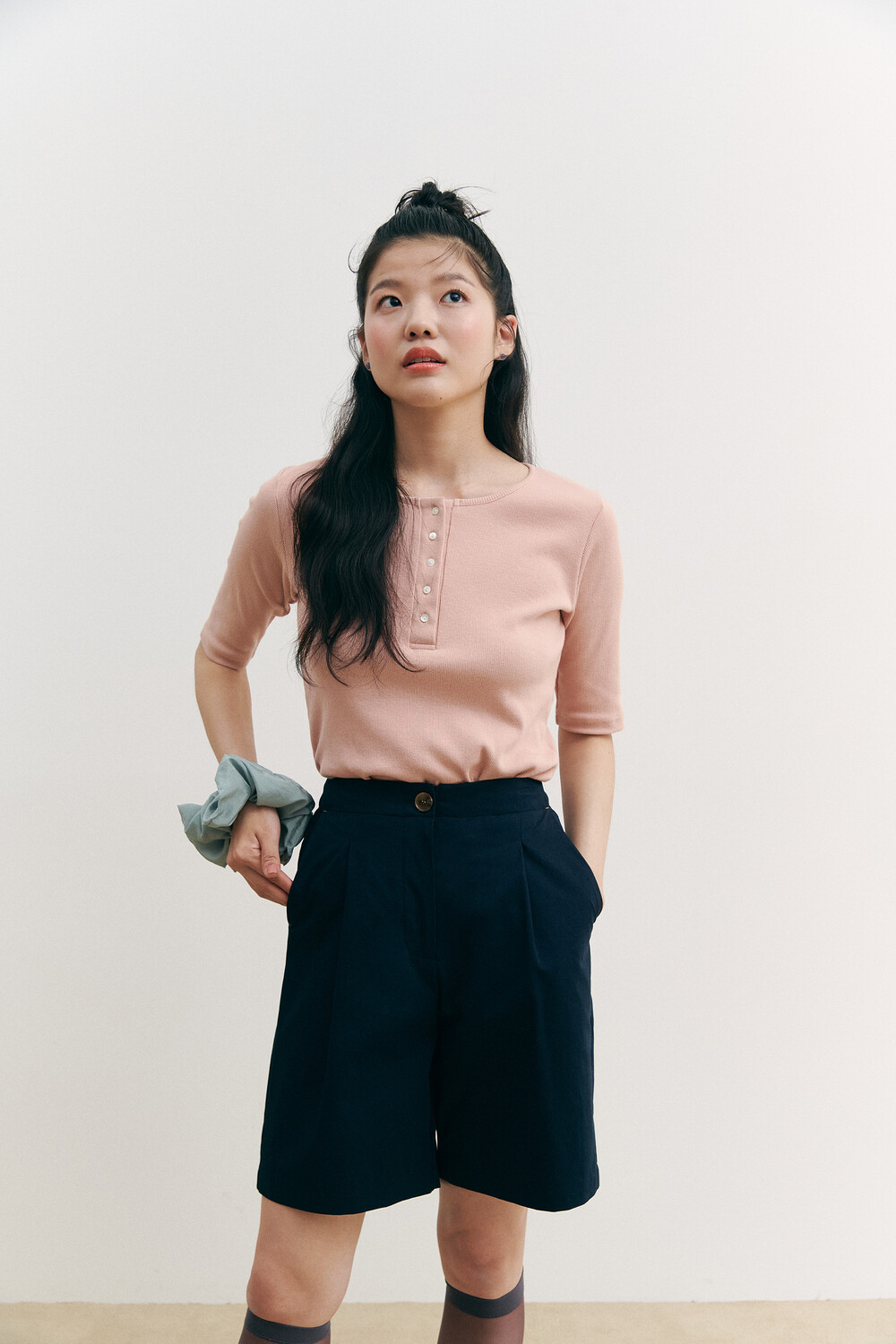 Henry Neck Ribbed Knit Top_pink