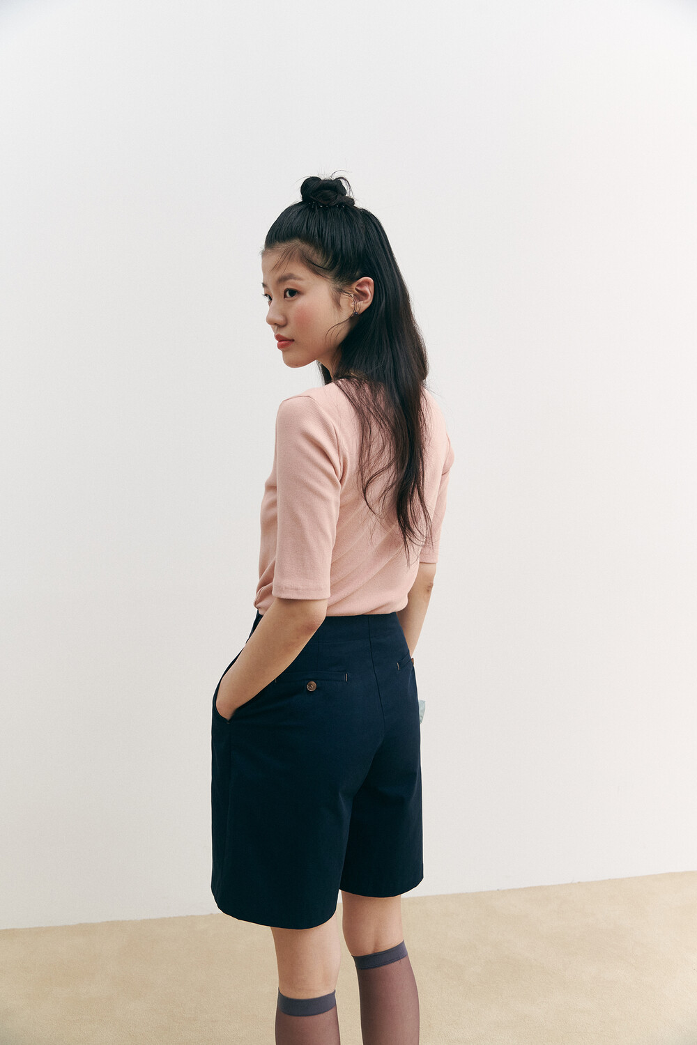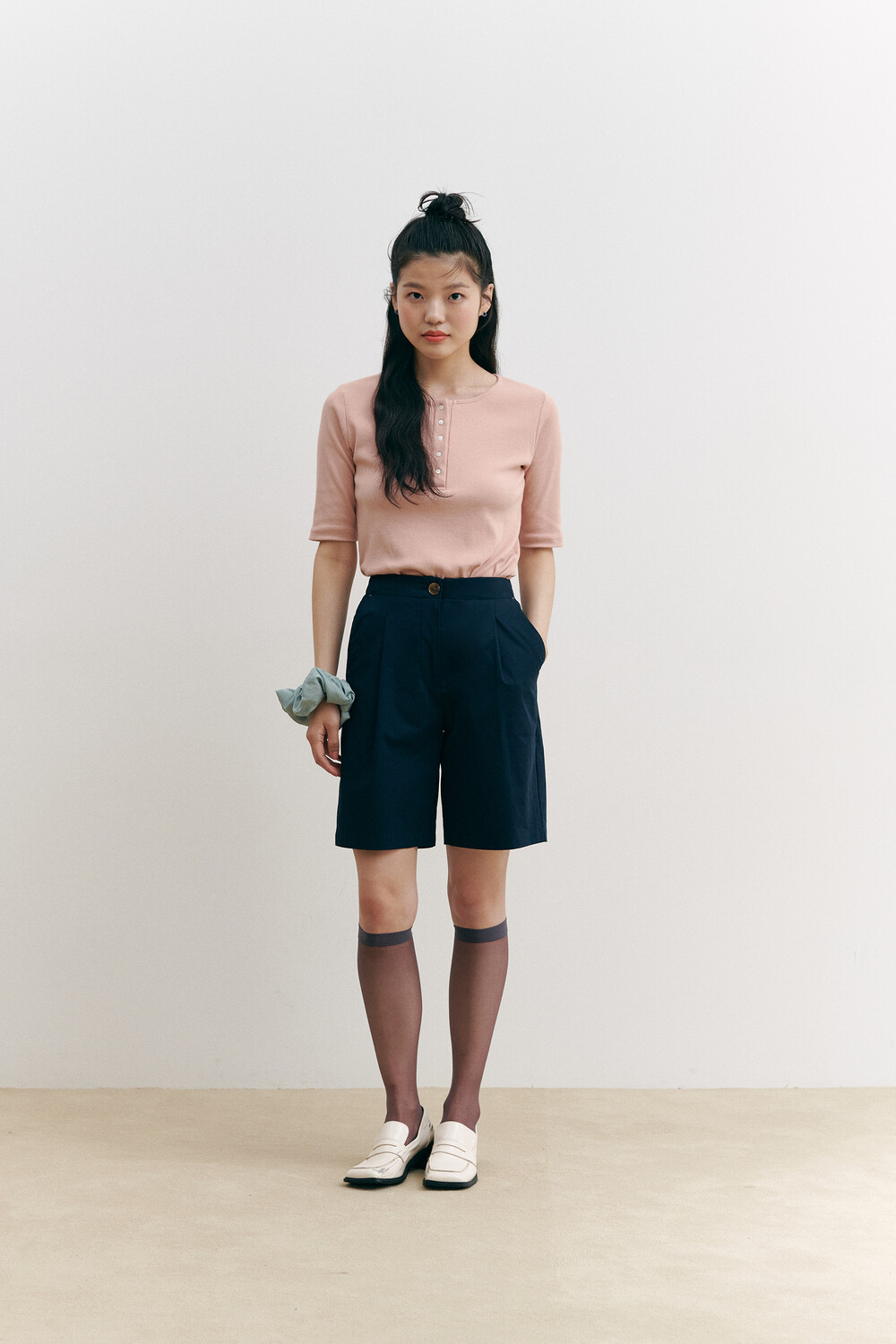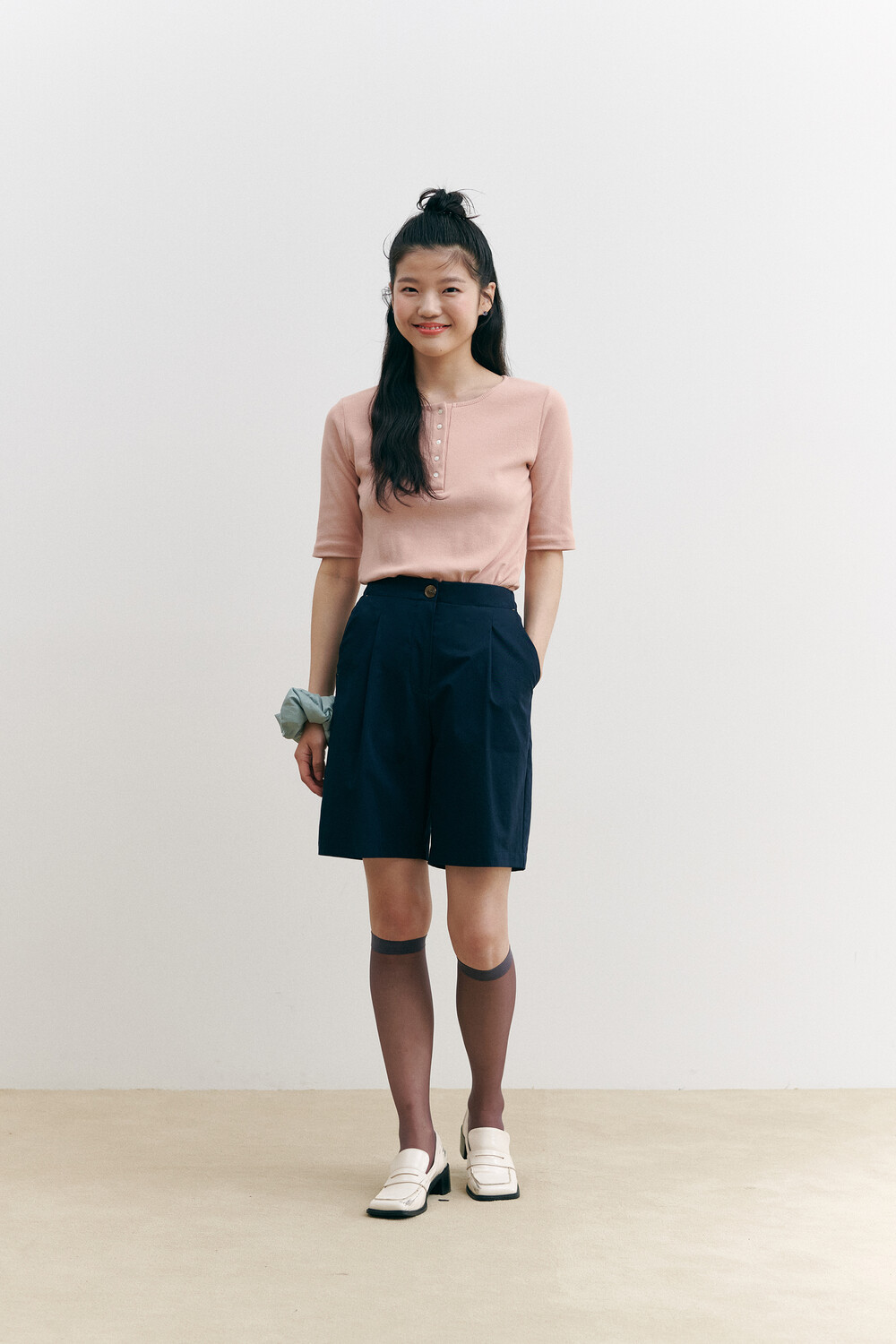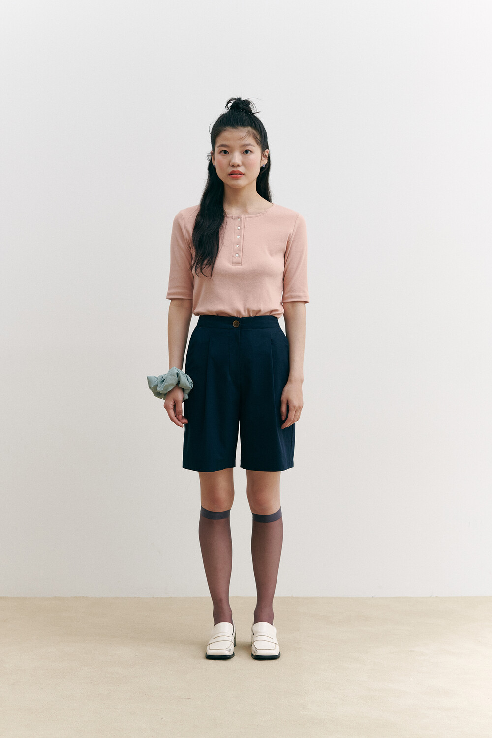 Henry Neck Ribbed Knit Top_pink