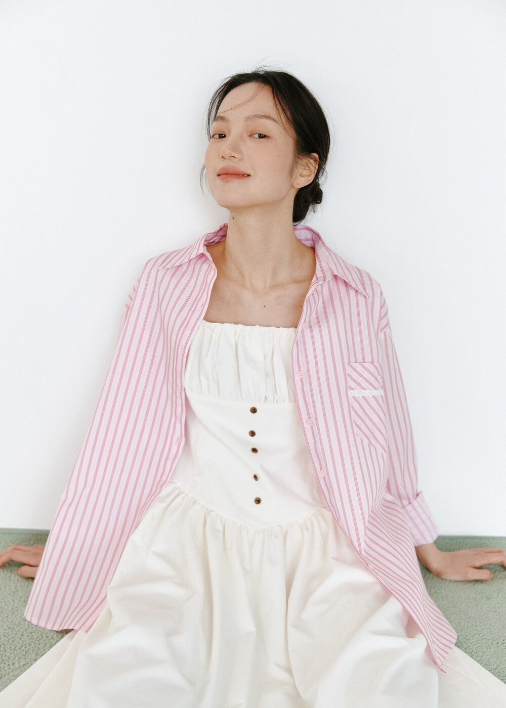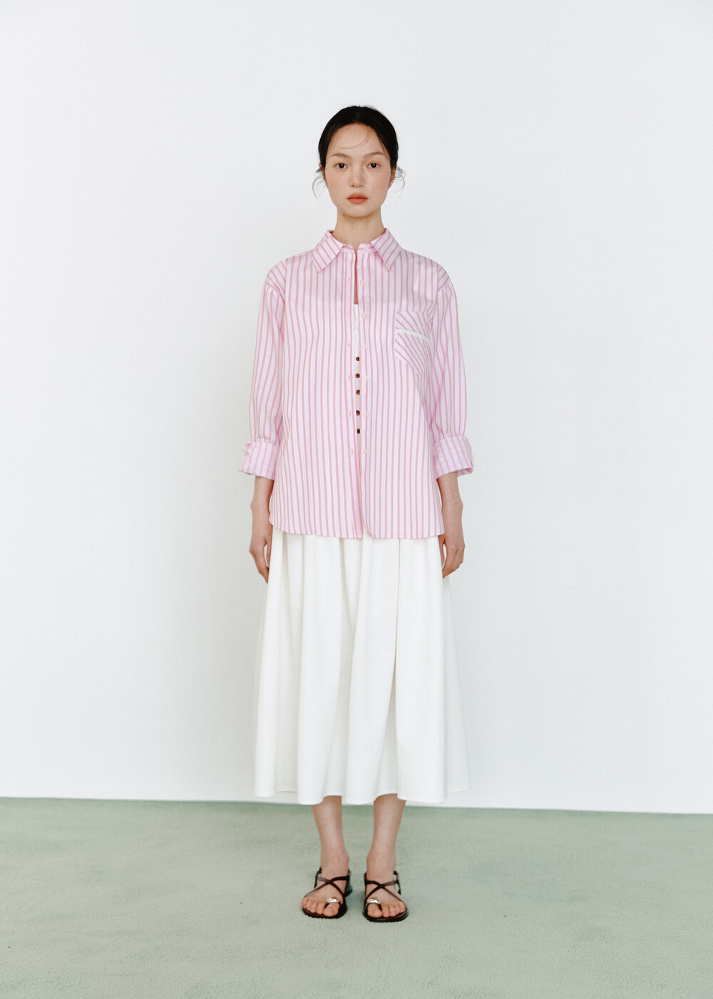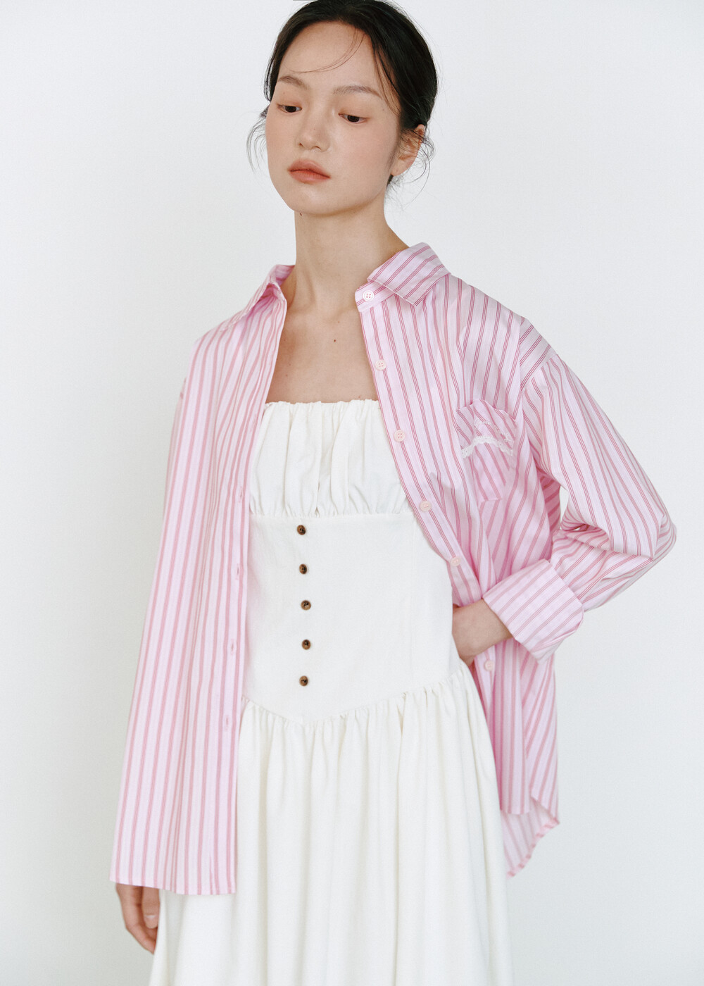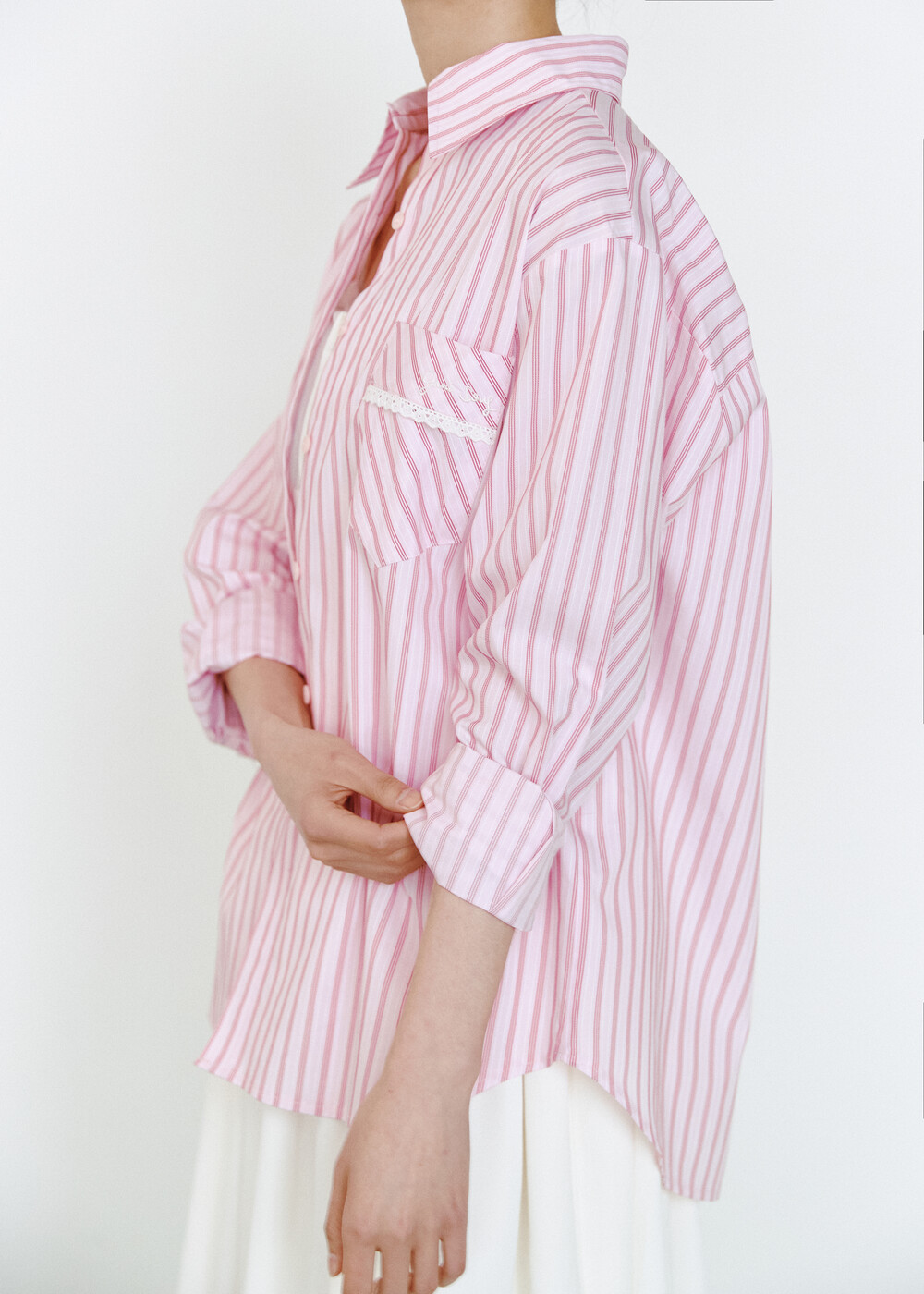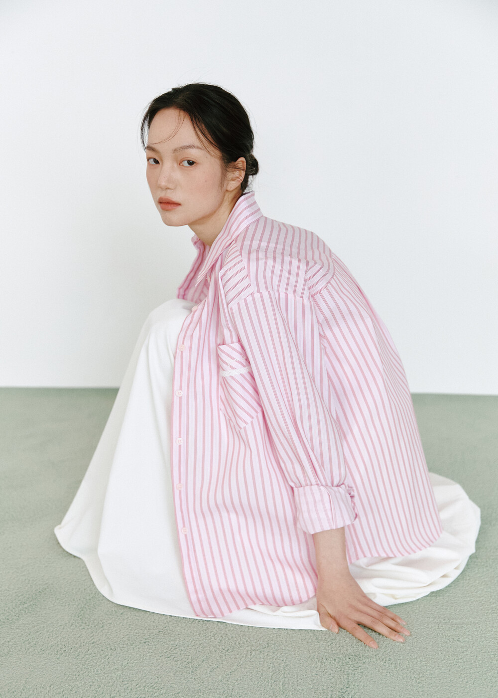 ㆍ핑크와 라즈베리 컬러 배색의 화사한 스트라이프 셔츠