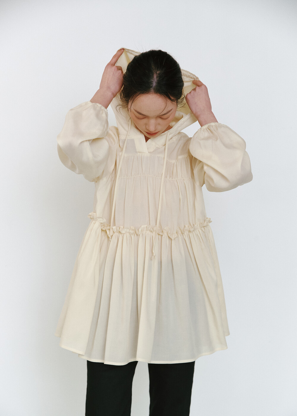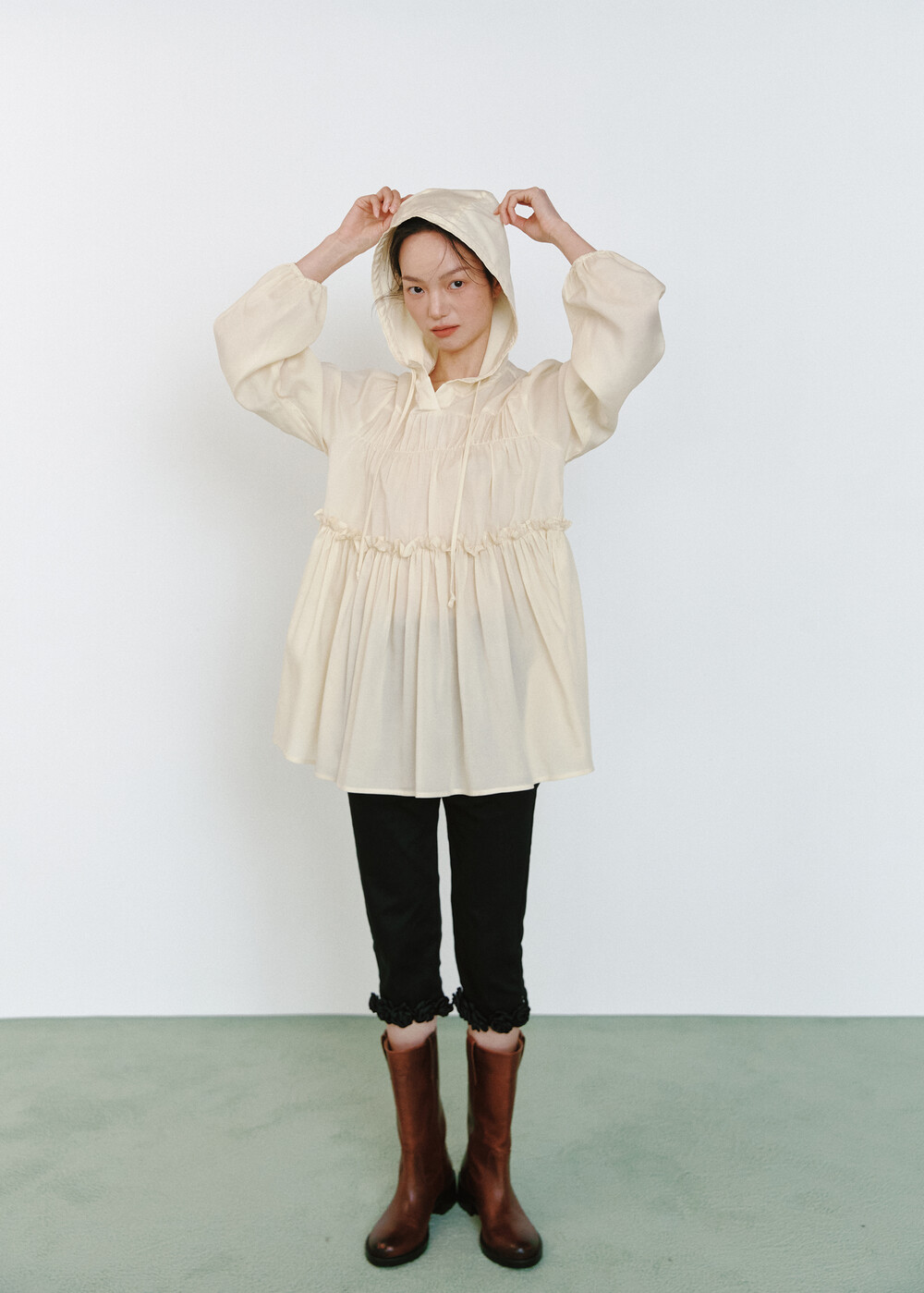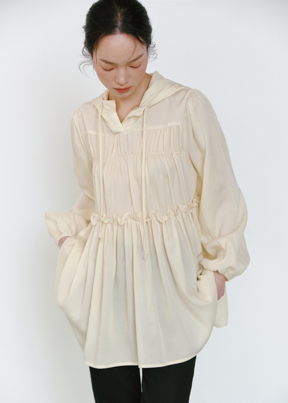 ㆍ시어한 텐셀 소재의 후드 블라우스