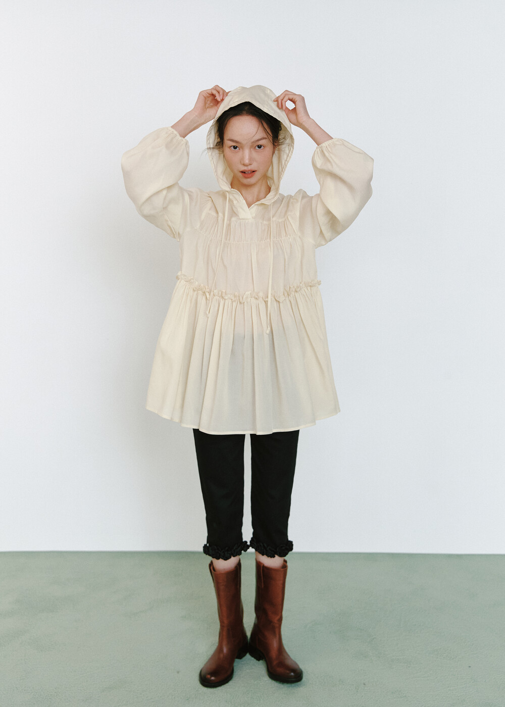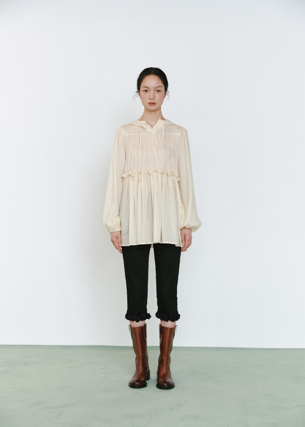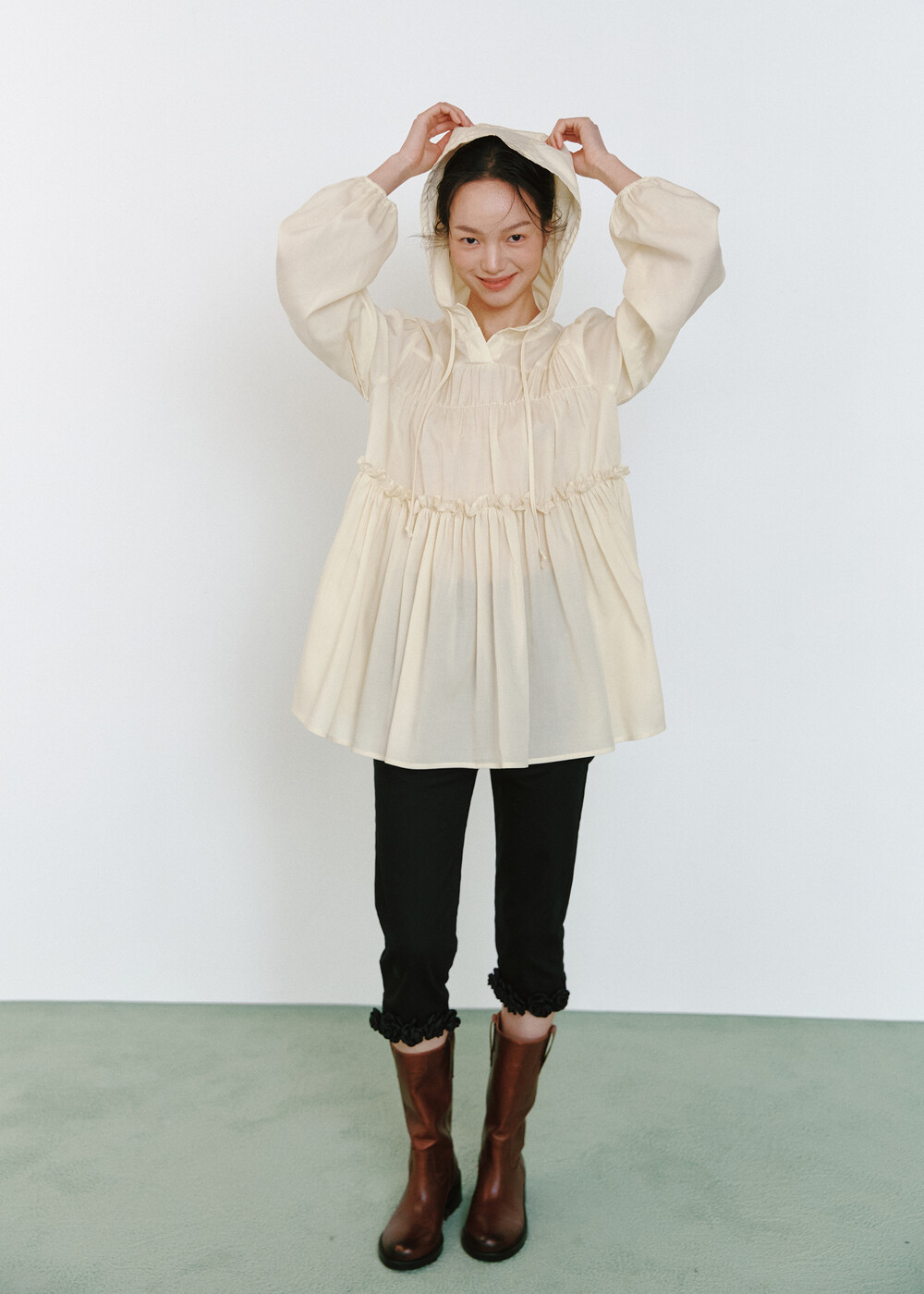 ㆍ시어한 텐셀 소재의 후드 블라우스