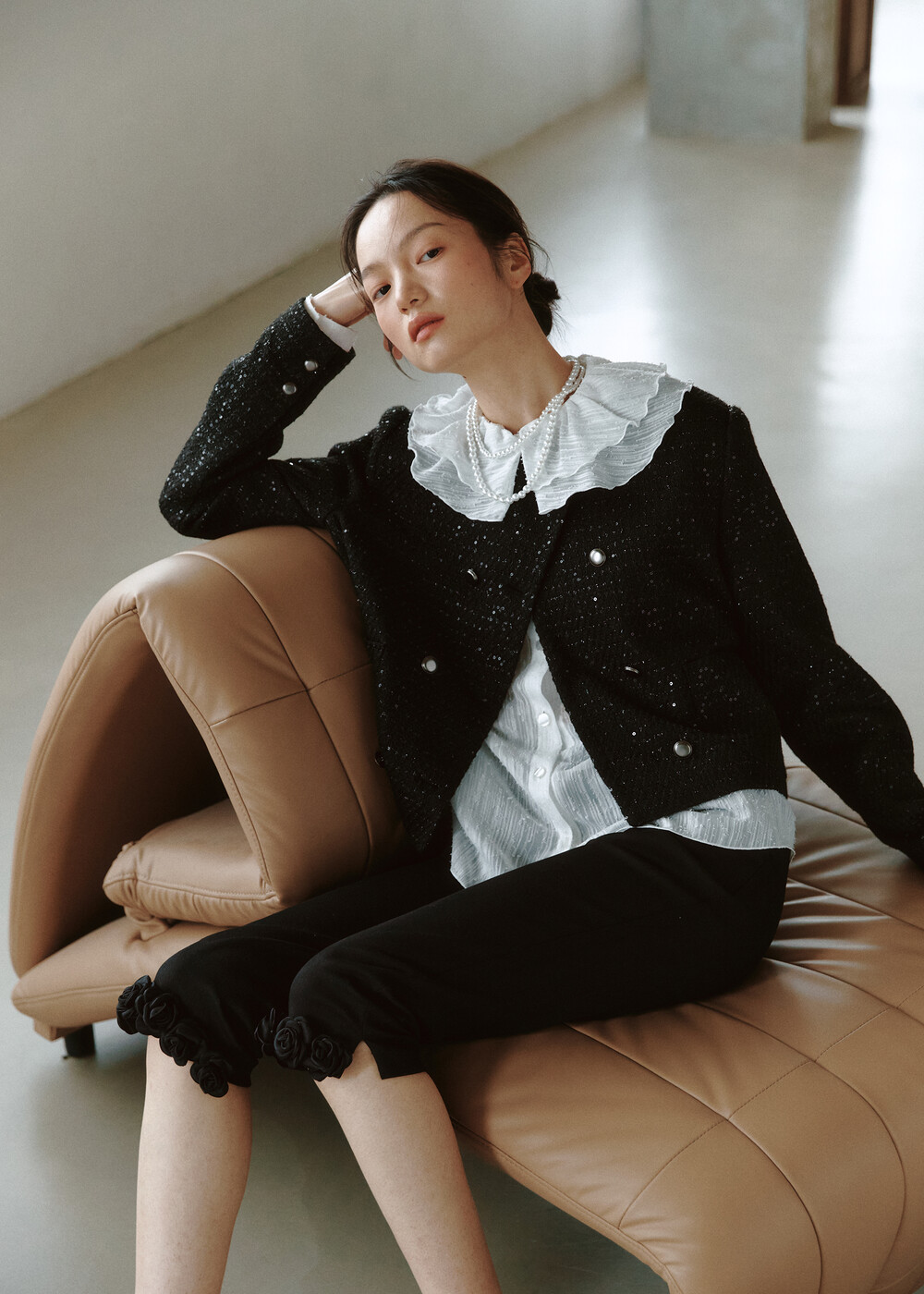 ㆍ은은하게 반짝거리는 원단으로 우아한 분위기를 연출