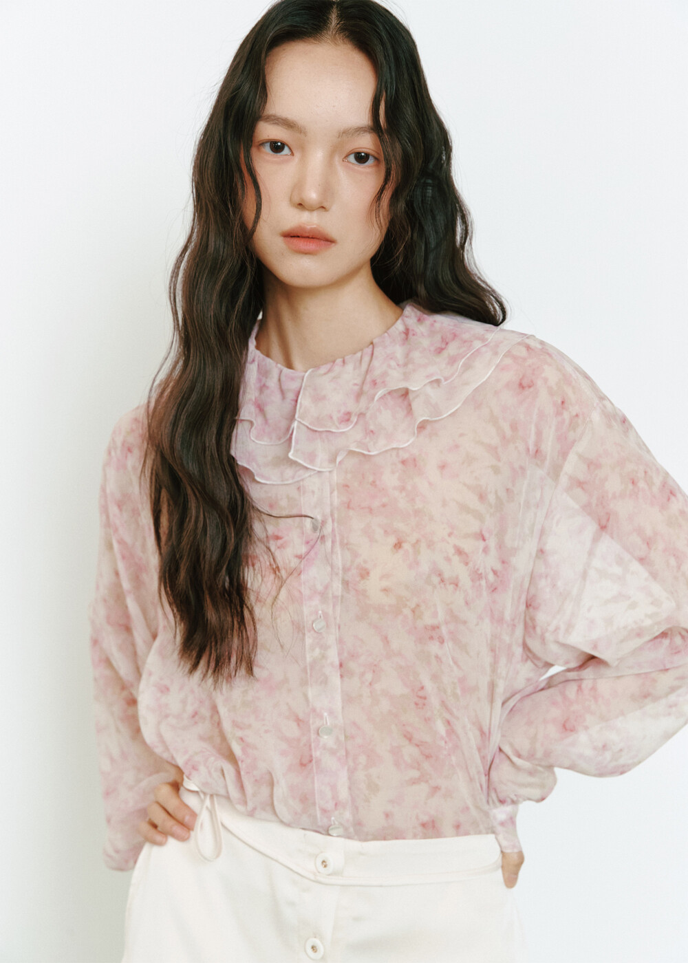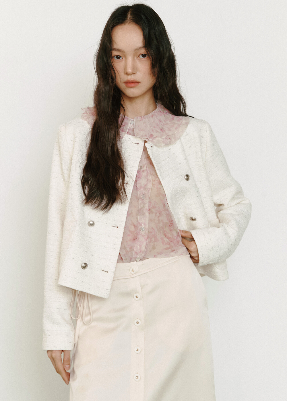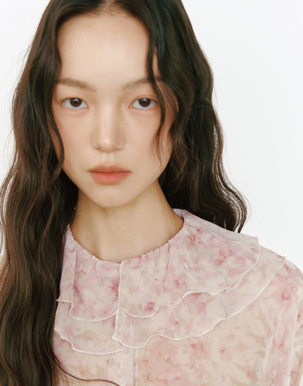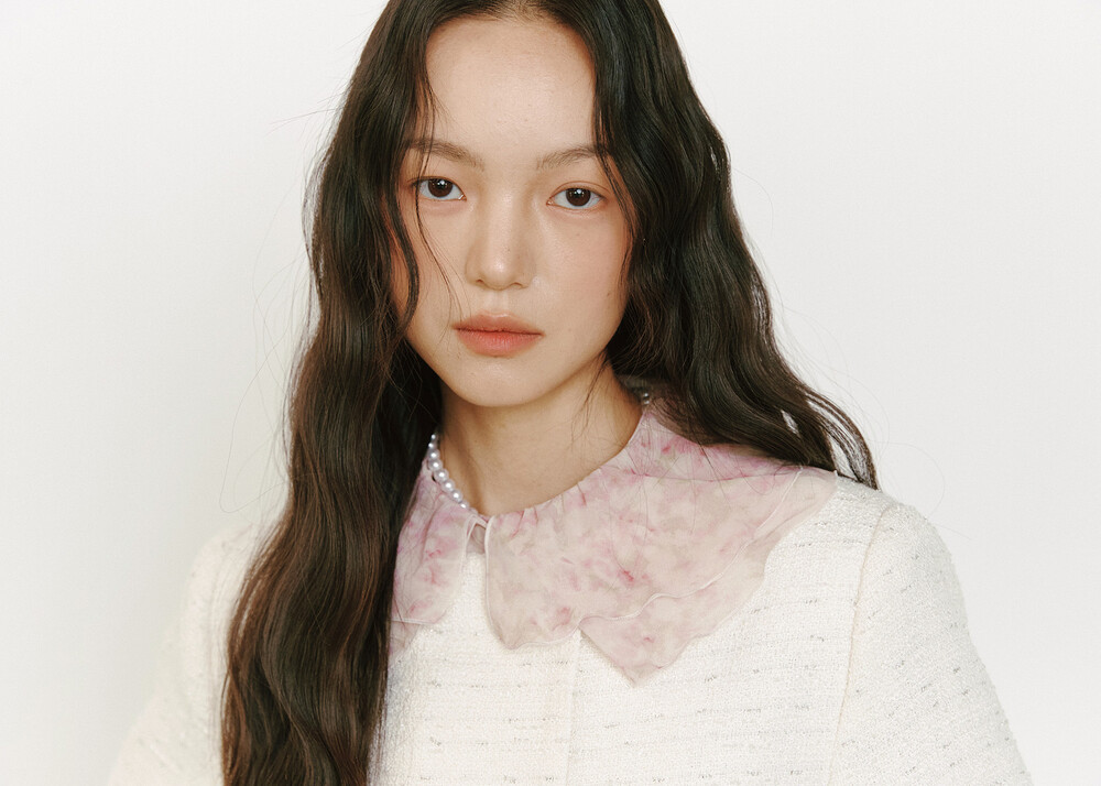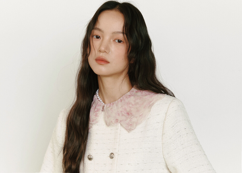 ㆍ카라 단과 밑단의 가볍게 마무리한 봉제 방식으로 여리여리한 무드를 연출