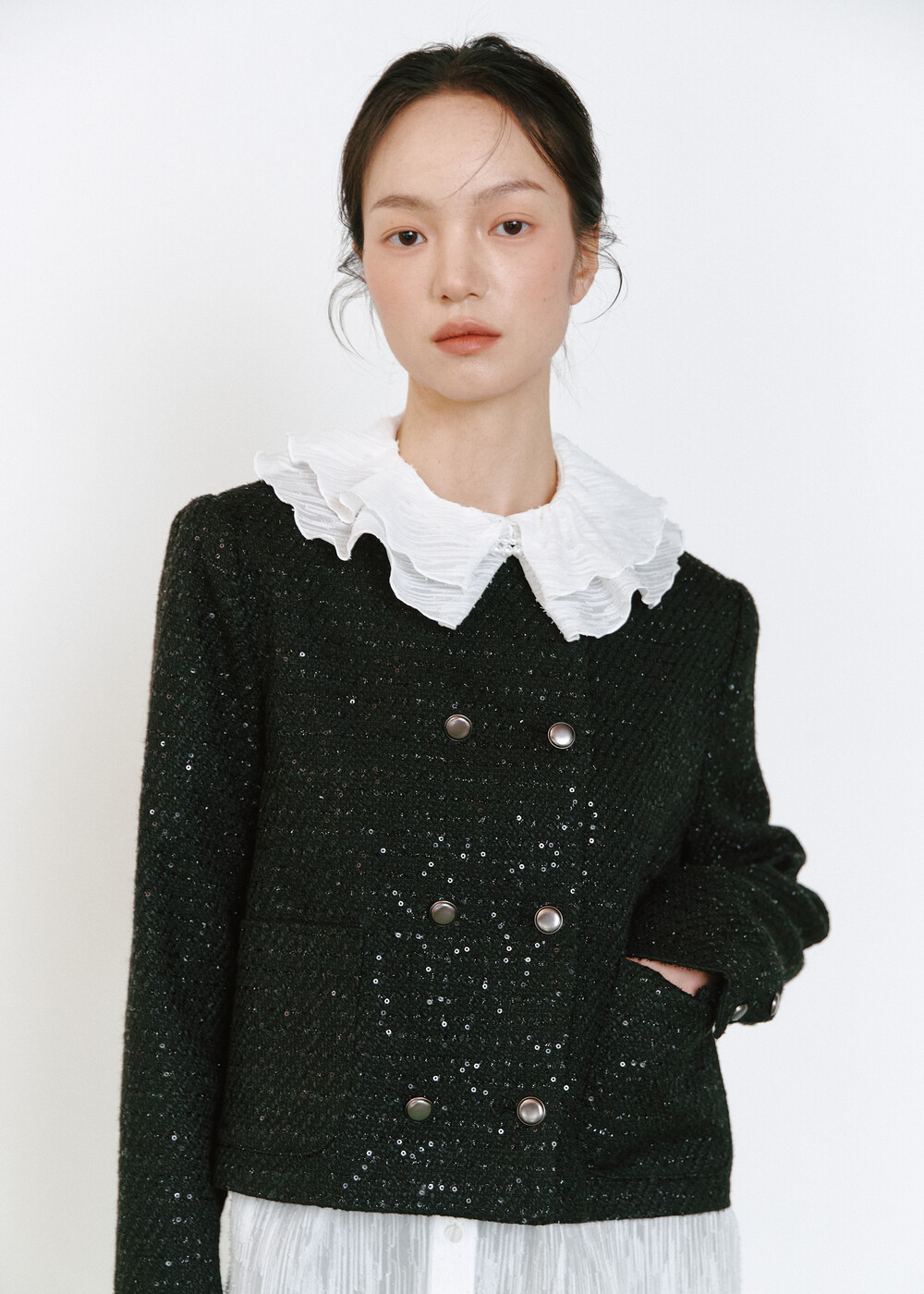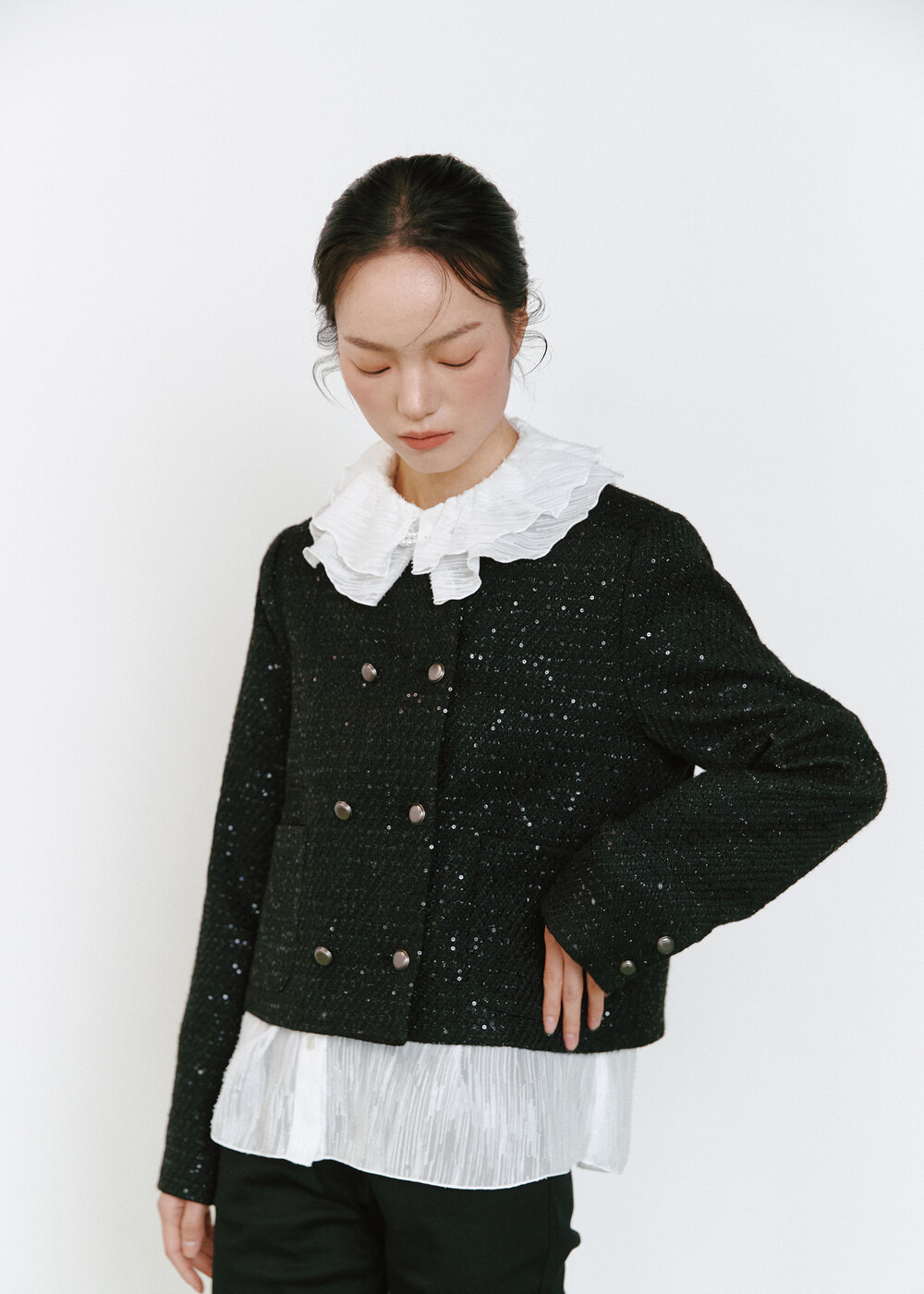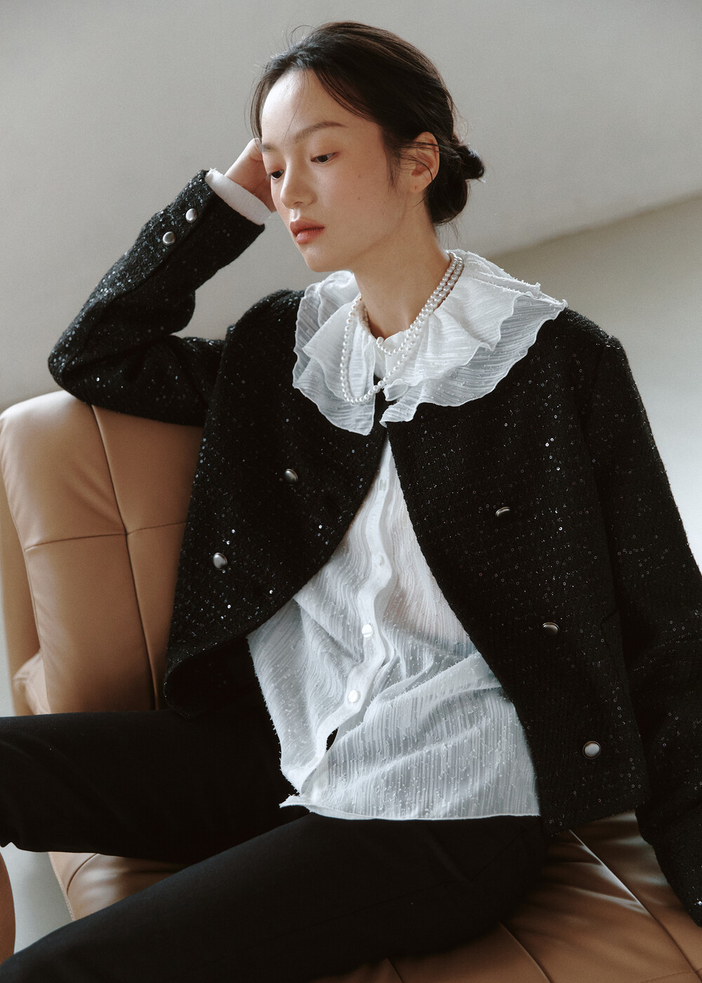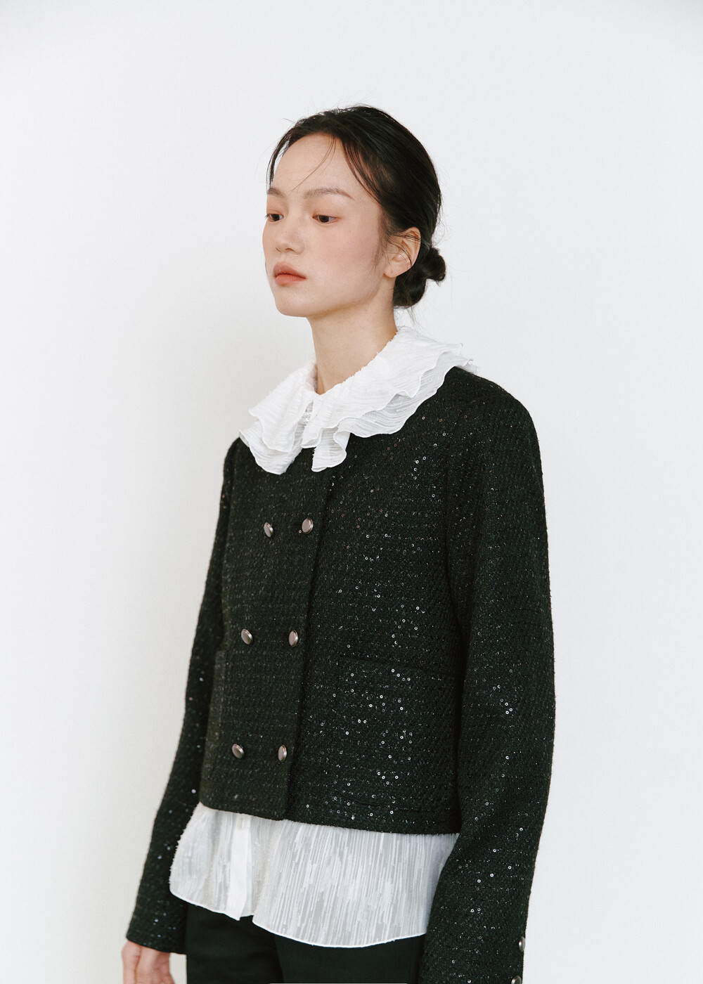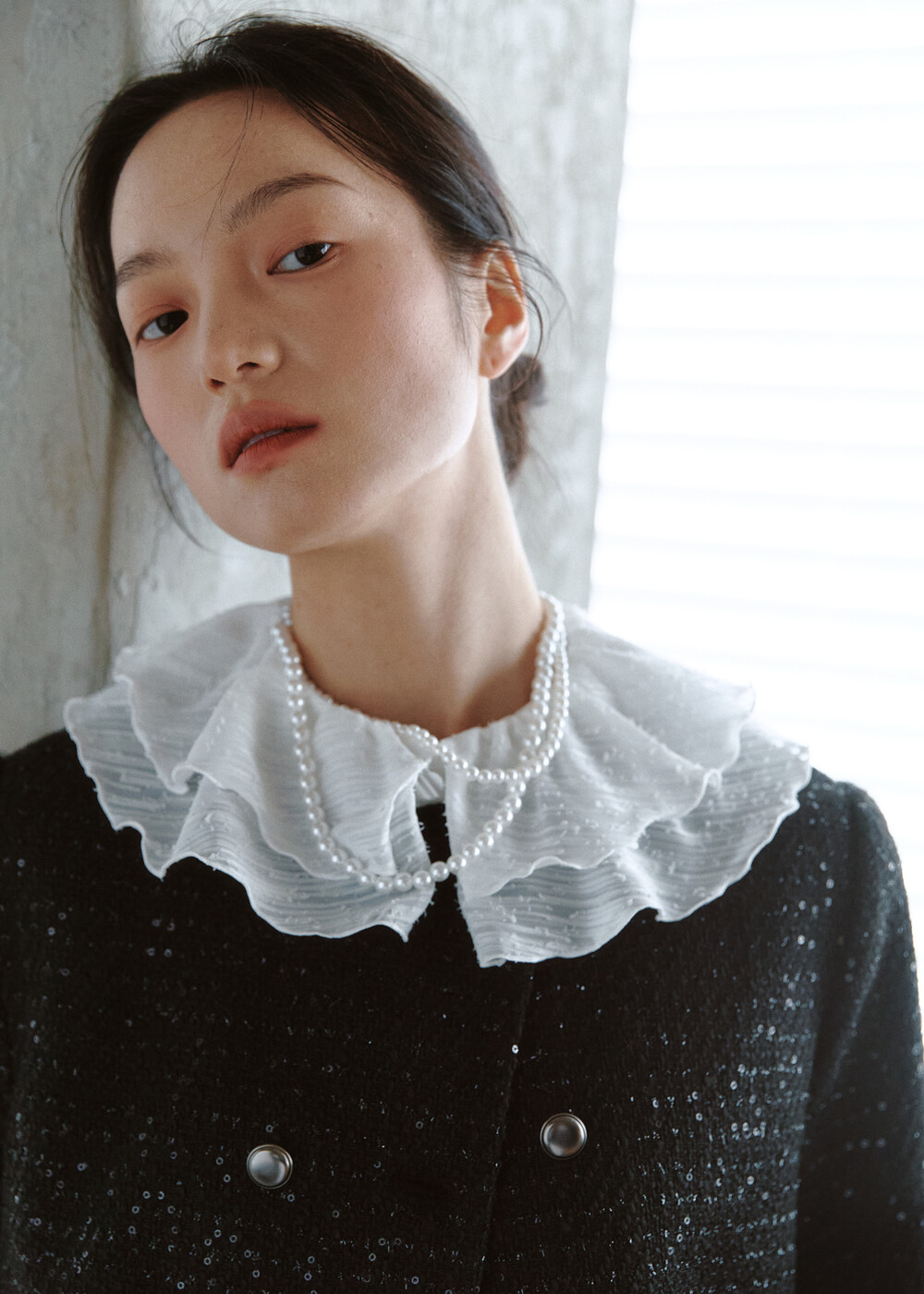 ㆍ이중 카라에 셔링을 살짝 넣은 디자인으로 레이어드하기 좋은 아이템